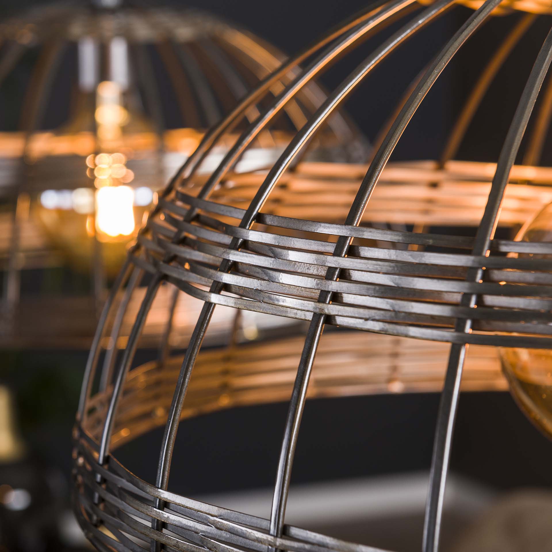 Deze hanglamp 'metal blinds' is uitgevoerd in metaal met een zwart nikkel finish. Het metaal is gevlochten en dit geeft een eigentijdse en ambachtelijke look aan de lamp. Het gevlochten metaal zorgt ervoor dat het licht mooi verdeeld wordt. Een echte eye-catcher en geschikt voor iedere ruimte! De kappen zijn afzonderlijk tot 150 cm in hoogte verstelbaar. Deze hanglamp maakt deel uit van de 'metal blinds' serie. Er wordt aanbevolen LED lichtbron (8467) te gebruiken.