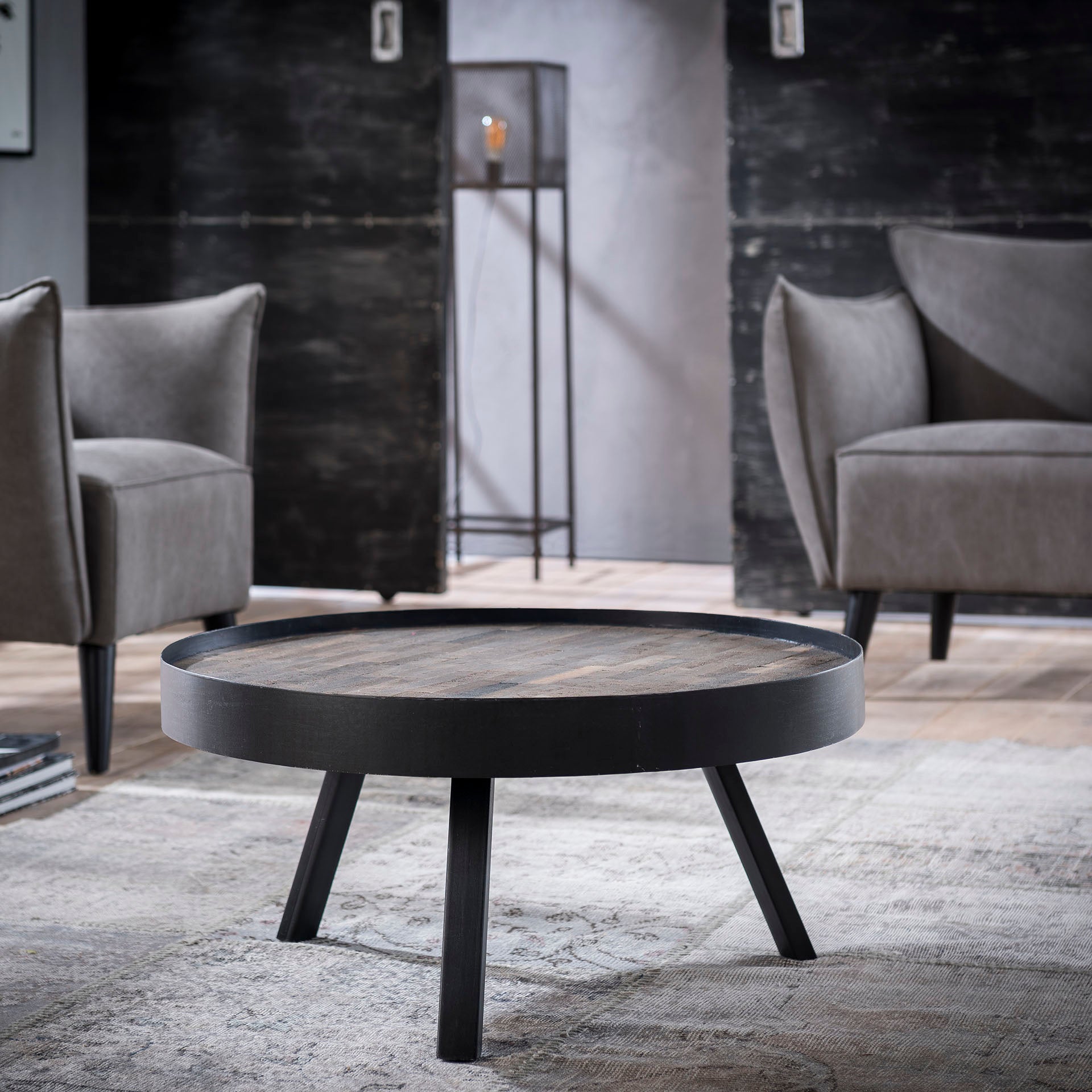D - Hoyz - Salontafel Teca - Ø75 met Rand - 75x75x35 - Zwart - Hout