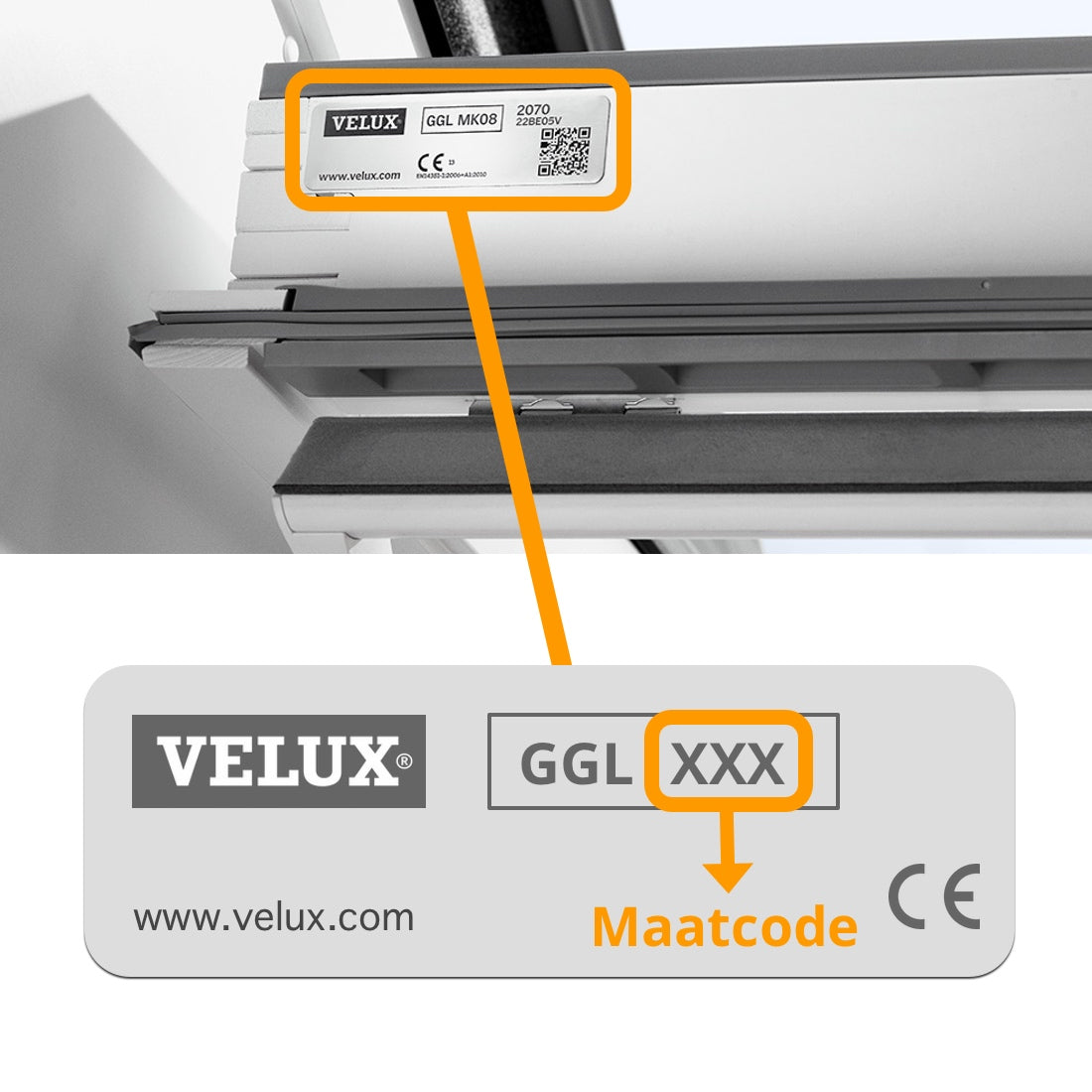 Als je het dakraam opent vind je een plaatje met daarop een code. Het eerste deel is de typecode, deze geeft aan van welk materiaal het dakraam is gemaakt. Het tweede deel is de maatcode, deze geeft aan welke maat je dakraam heeft. Daarom heb je deze nodig voor de juiste maat.