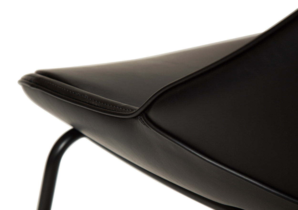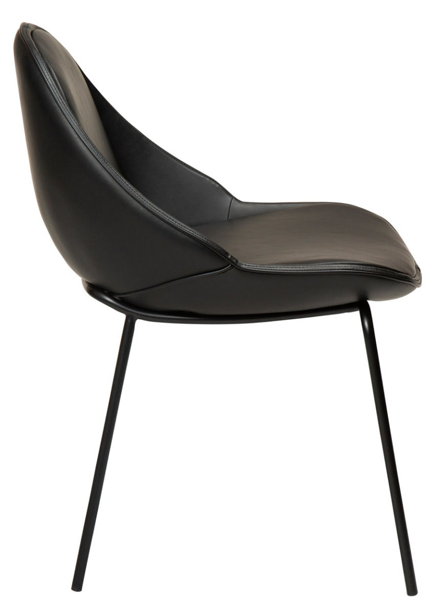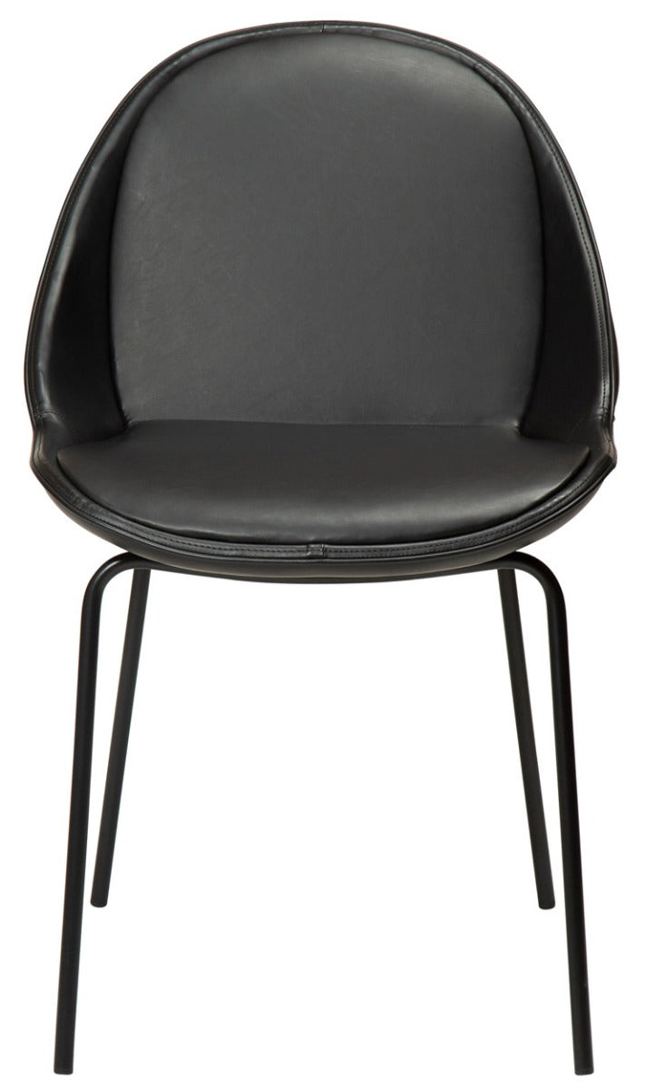 De Arch eetkamerstoel van Dan-Form kenmerkt zich door een artistiek design met ronde vormen Zo is de stoel voorzien van een zwarte, vintage kunstleren kuipzitting met een ronde rugleuning en een ronde zitting Dat maakt de eetkamerstoel een stijlvolle en luxueuze verschijning De slanke buispoten van zwart gepoedercoat metaal zijn direct verbonden aan de stoel en zorgen voor een moderne en funky touch