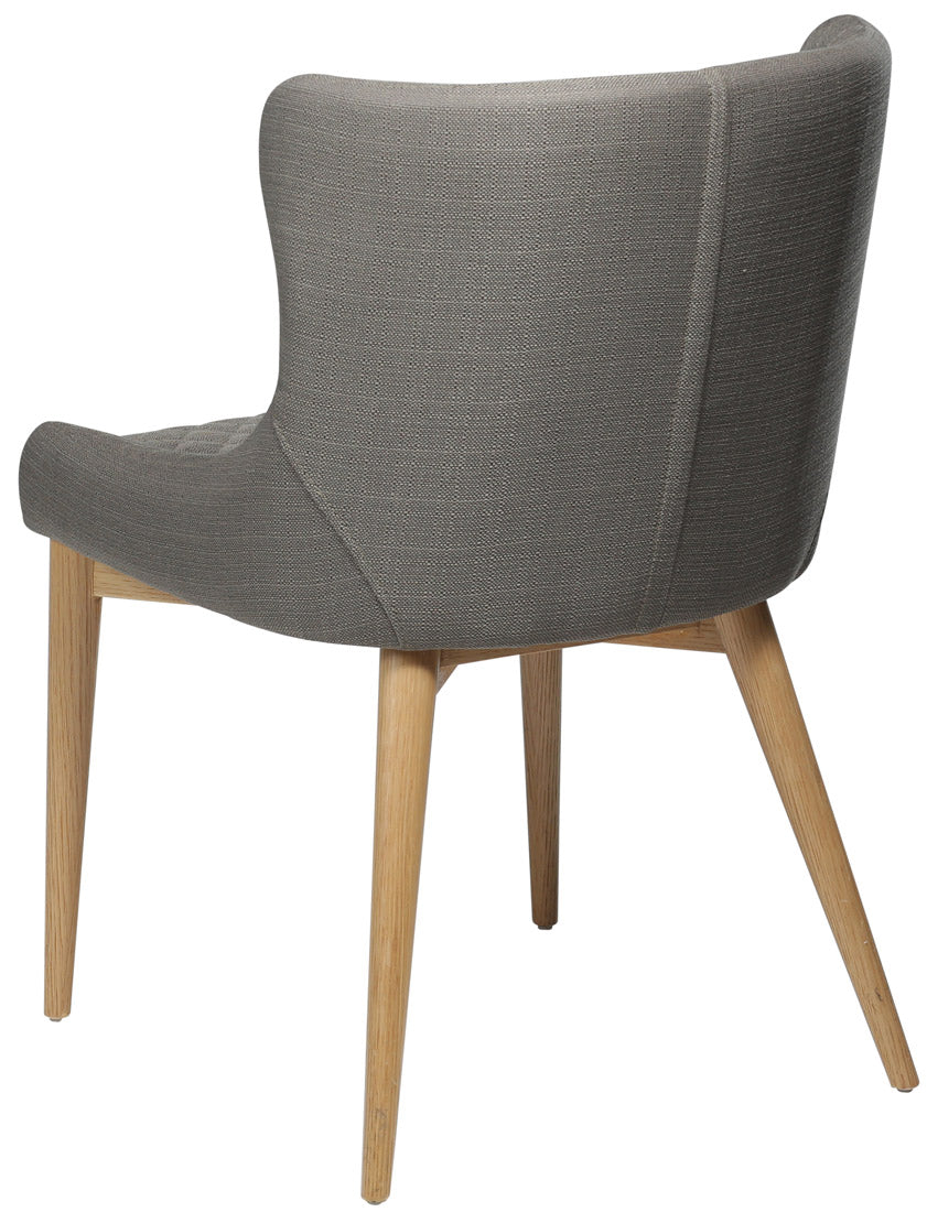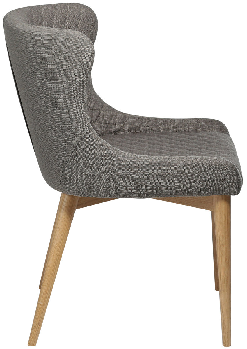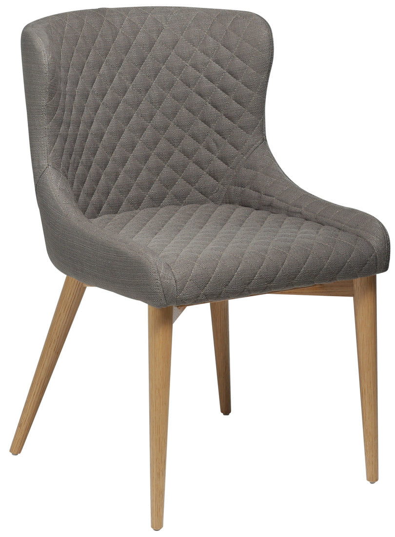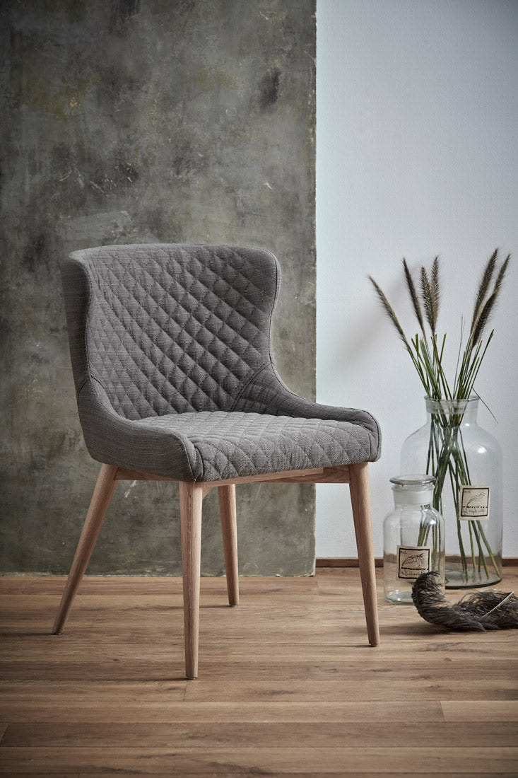 Dat de Dan-Form Vetro eetkamerstoel een elegant meubelstuk is, komt voornamelijk door het klassieke design in combinatie met de stoffen bekleding De grijs/bruine, stoffen zitting is voorzien van stiksels wat de stoel een luxe uitstraling geeft Tel daarbij op dat de naturelkleurige, eikenhouten poten de stoel een speels karakter geven en je weet zeker dat je jarenlang plezier hebt van deze Dan-Form eetkamerstoel