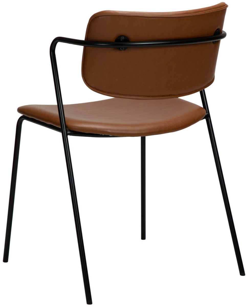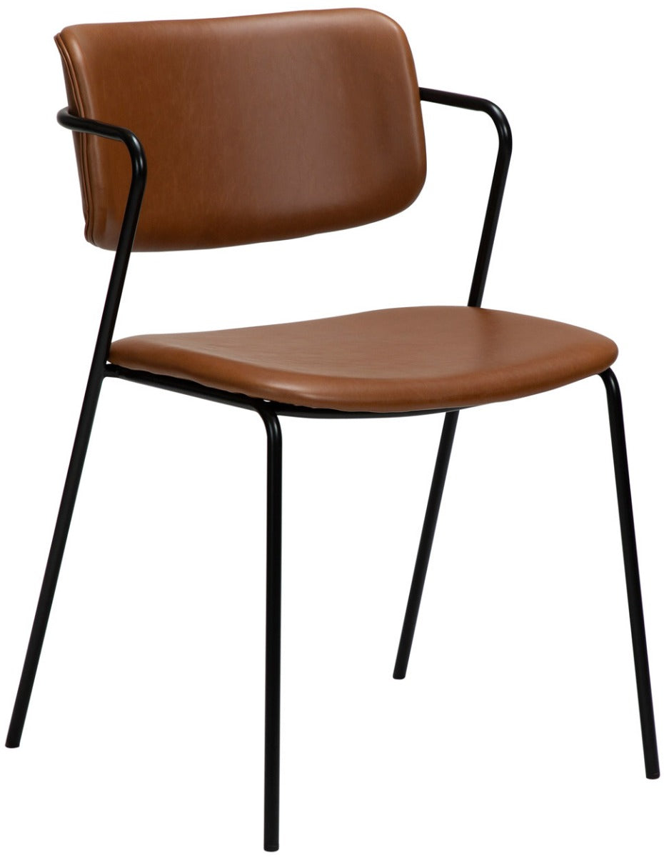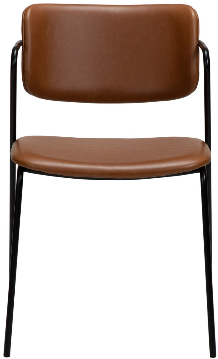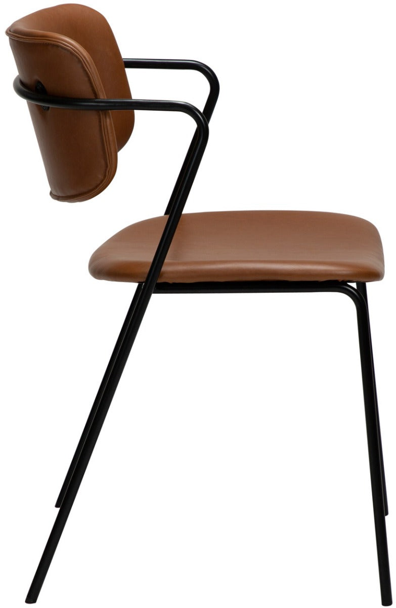 De Zed eetkamerstoel van Dan-Form is ontworpen door Steffensen en Würtz en kenmerkt zich dan ook door hoogwaardig design De cognackleurige, kunstleren zitting in combinatie met de zwart gepoedercoat metalen poten geven de eetkamerstoel een minimalistische en trendy uitstraling Het ontwerp doet denken aan een klassieke stoel uit de jaren 50 maar krijgt door de strakke lijnen toch een modern uiterlijk