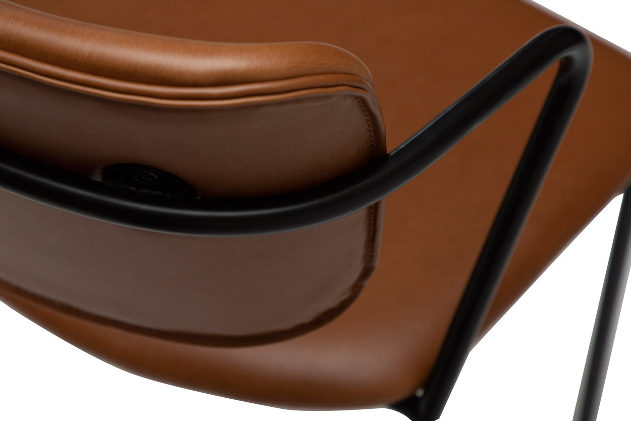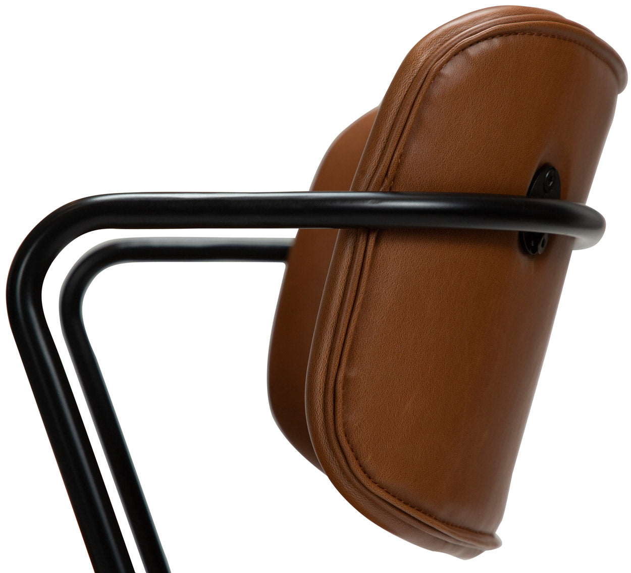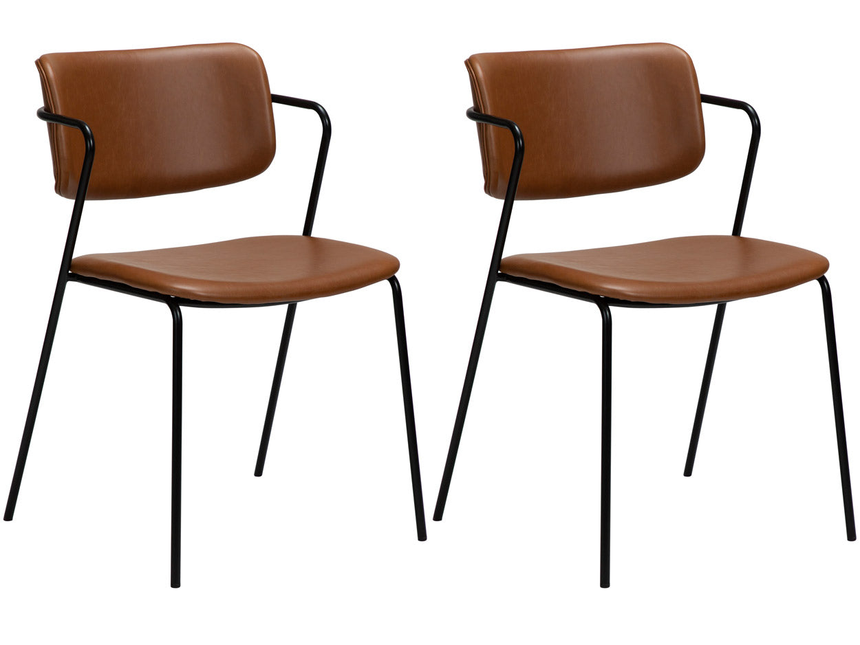 De Zed eetkamerstoel van Dan-Form is ontworpen door Steffensen en Würtz en kenmerkt zich dan ook door hoogwaardig design De cognackleurige, kunstleren zitting in combinatie met de zwart gepoedercoat metalen poten geven de eetkamerstoel een minimalistische en trendy uitstraling Het ontwerp doet denken aan een klassieke stoel uit de jaren 50 maar krijgt door de strakke lijnen toch een modern uiterlijk