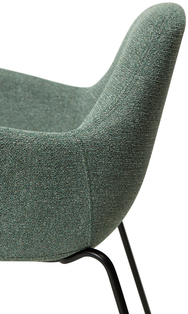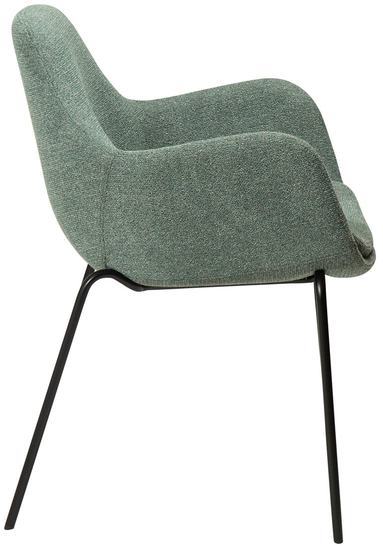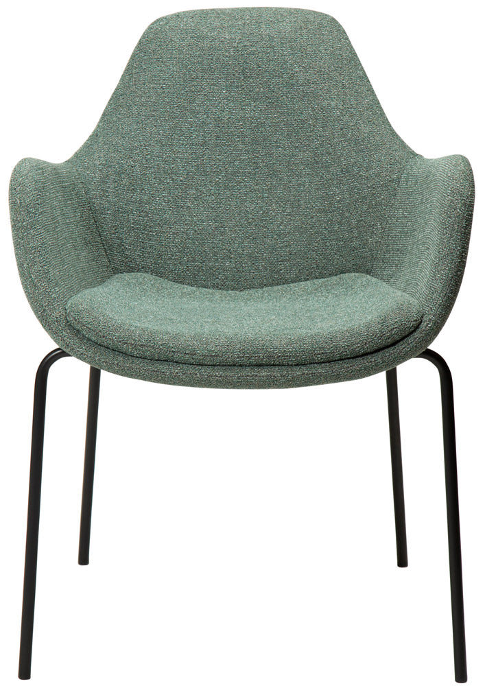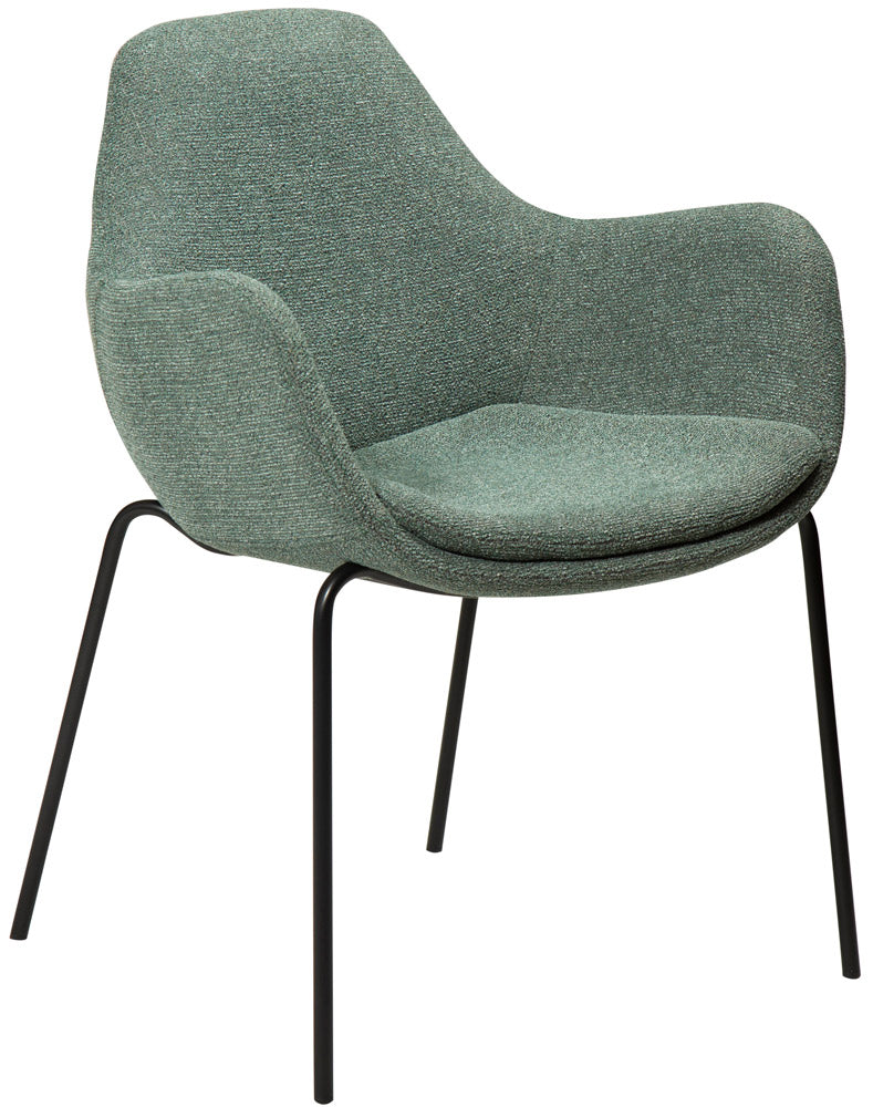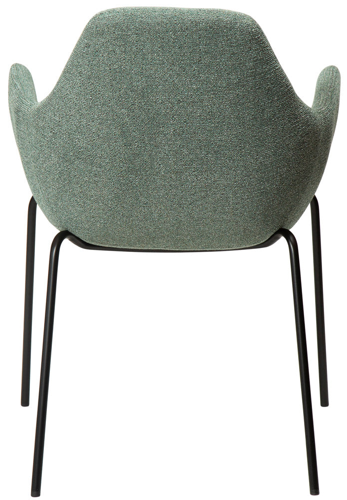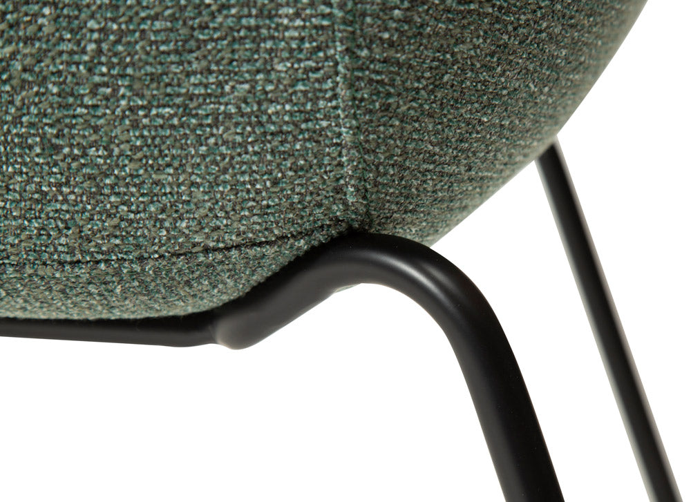 Het Deense merk Dan-Form weet als geen ander comfortabele meubels te maken die het interieur ook nog eens een stijlvolle uitstraling geven En dus is de Zimmer eetkamerstoel een heuse eyecatcher die heerlijk zit De stoel kenmerkt zich door een kuipzitting voorzien van groene bouclé stof Bouclé is een geweven stof dat een oppervlakte heeft van lusjes en daardoor een stoere uitstraling heeft maar zacht aanvoelt De stof in combinatie met de slanke, zwart gepoedercoat metalen poten maakt de Zimmer stoel dan ook een moderne en stijlvolle stoel om te zien