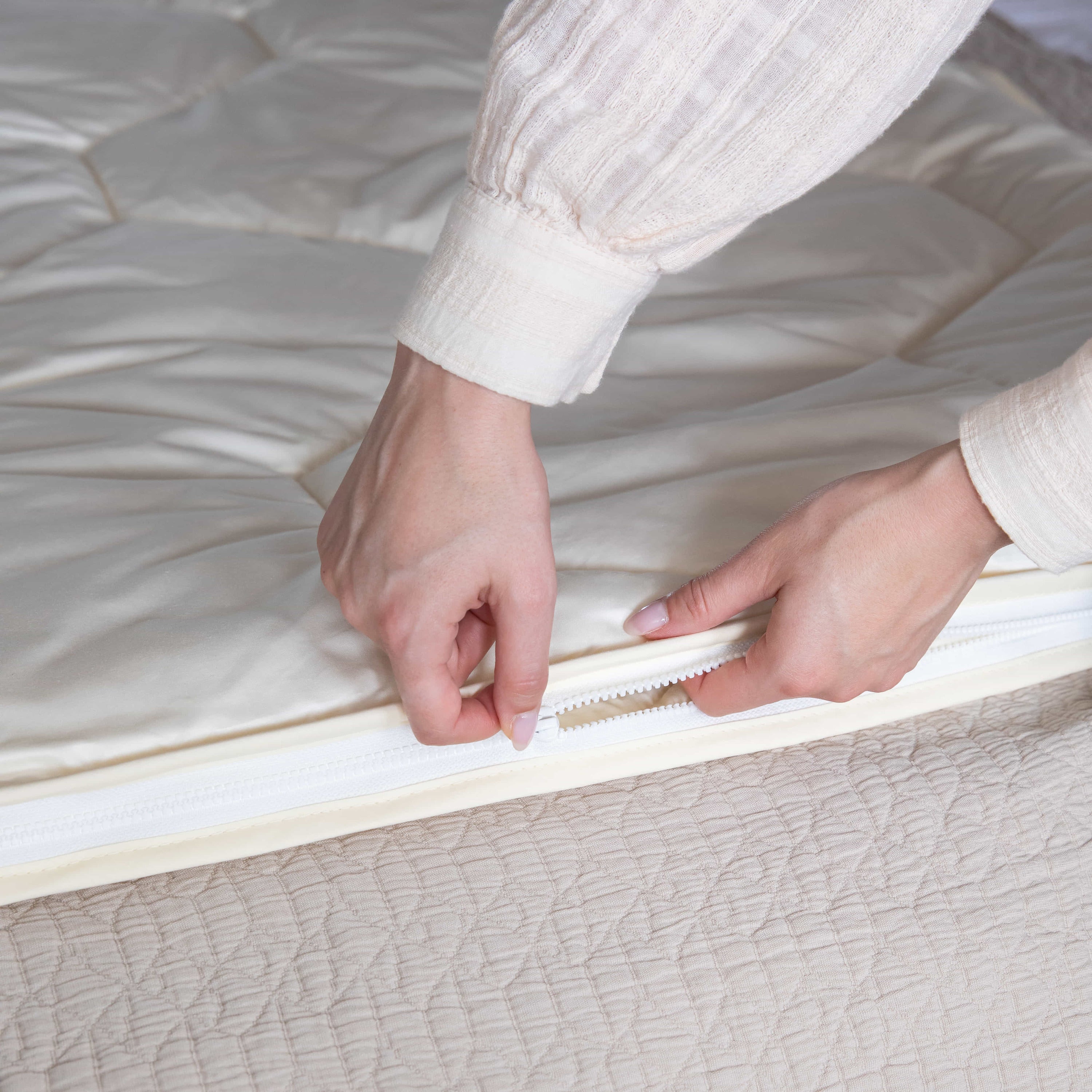- Tijkstof: 100% zijdezacht ongebleekt natuurzuiver katoen
