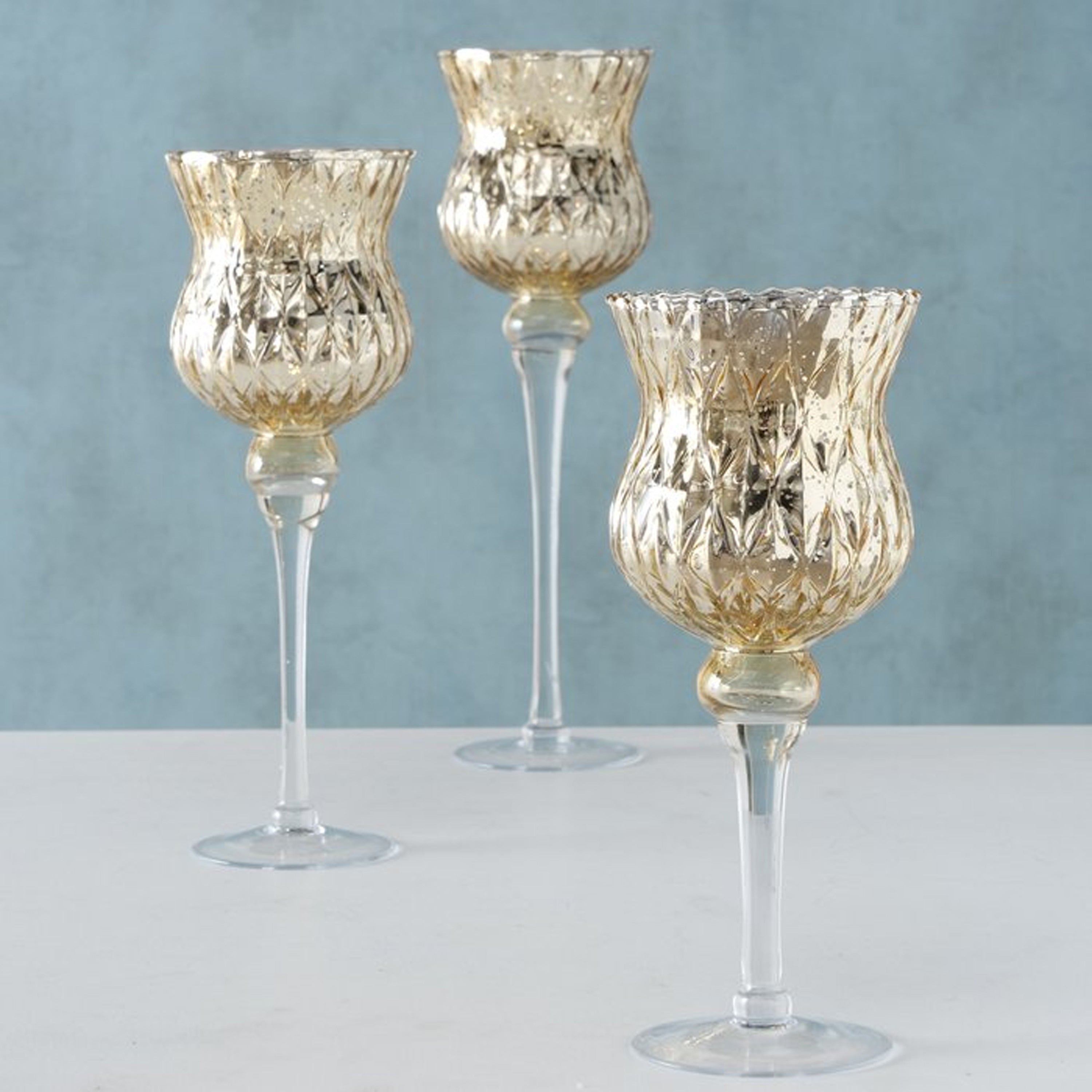Deco by Boltze - glazen kaarsenhouders - windlichten 3st goud 30-40cm