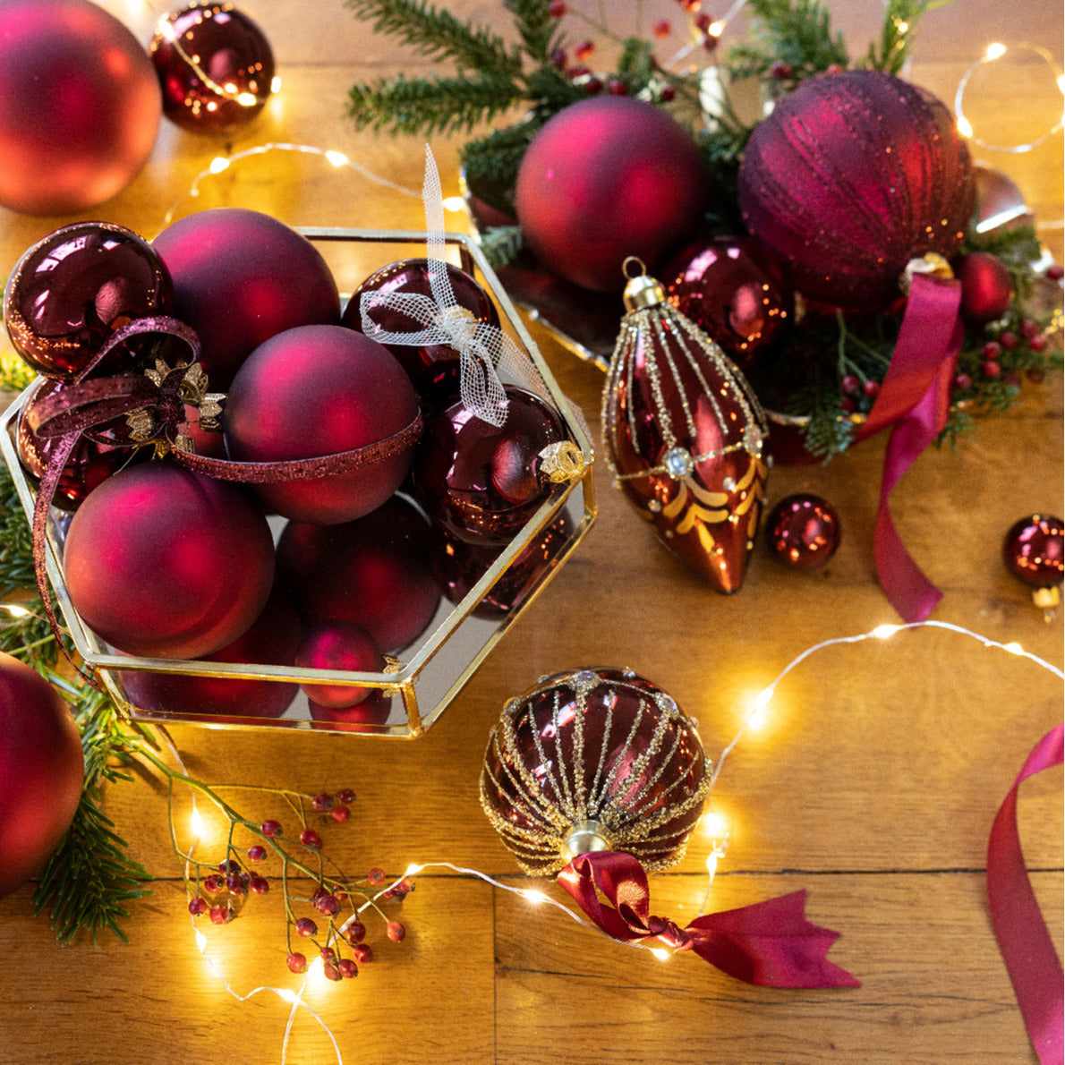 Decoris kerstballen - 6x - donkerrood - D8 cm - glas