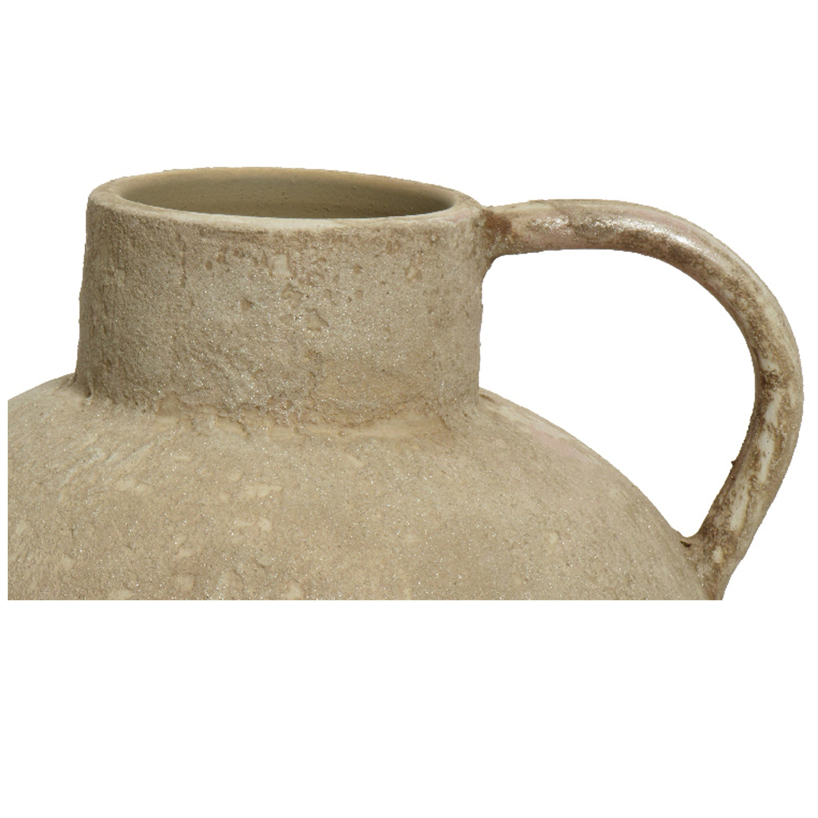 Decoris vaas in vintage kruik model in de kleur lichtbruin. Zet de vaas neer met droogbloemen, (kunst)takken of pluimen. Deze eyecatcher voor in huis levert gegarandeerd complimenten op. De vaas is handgemaakt in Portugal. Materiaal: terracotta. Diameter: ca. 22 cm. Hoogte: ca. 20 cm. Tip: als je de kruik voor bloemen wilt gebruiken, zet dan een schotel eronder om eventueel lekken tegen te gaan. De vaas is niet 100% waterdicht.