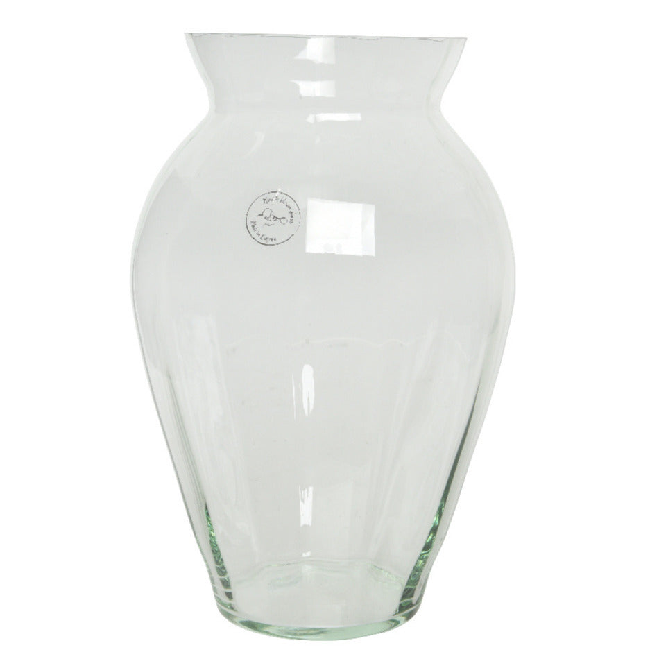 Bloemen vaas transparant, gemaakt van glas. Deze vaas is 30 cm hoog met een diameter op het breedste punt van 20 cm. Vazen voor bloemen, takken of boeketten. Handgemaakte stijlvolle vaas voor binnen gebruik.