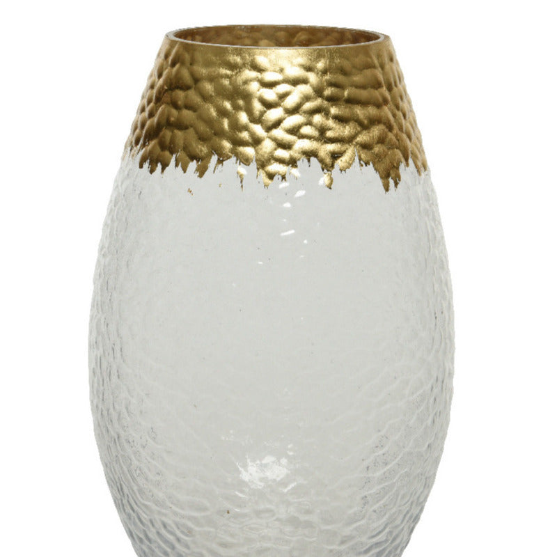 Bloemen vaas in kleur transparant/goud, gemaakt van glas. Deze vaas is 20 cm hoog met een diameter van 12 cm. Vazen voor bloemen, takken of boeketten. Handgemaakte vaas.
