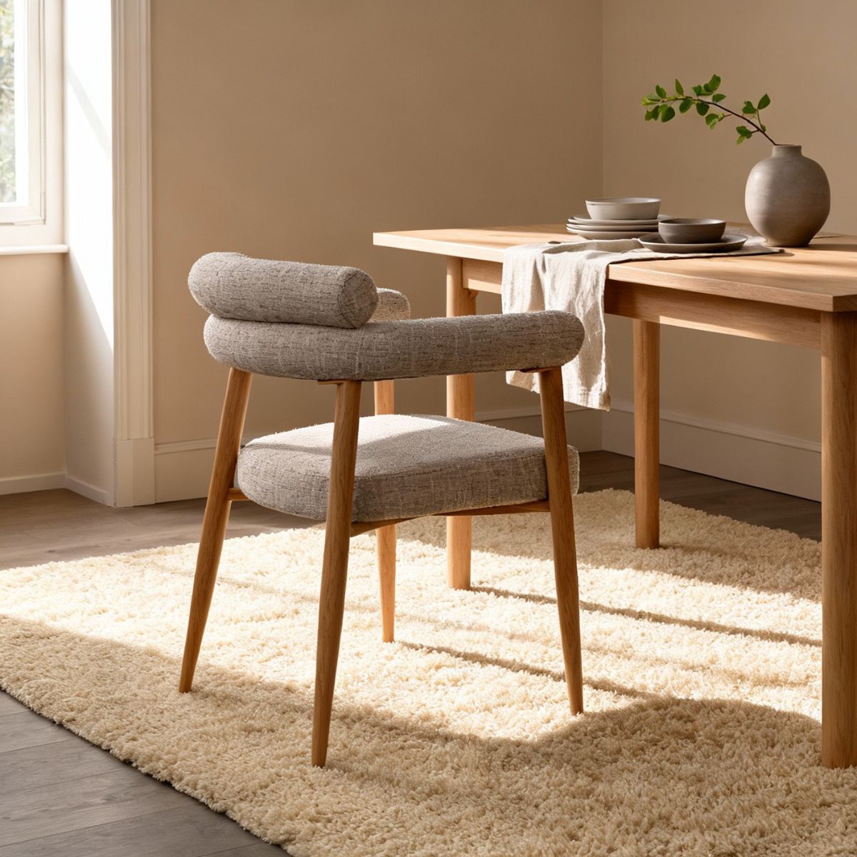 Ontdek de DÉJA Eetkamerstoel Lidingö in een elegante beige kleur, perfect voor een Scandinavisch interieur. Deze stoel combineert stijlvol design met comfort, dankzij de hoogwaardige stof en het stevige metalen frame. De beige kleur zorgt voor een warme en uitnodigende uitstraling, terwijl de Scandinavische stijl een moderne touch toevoegt aan je eetkamer. De stoel is ideaal voor dagelijks gebruik en biedt een comfortabele zitervaring, waardoor hij perfect is voor lange diners of gezellige avonden met vrienden en familie.