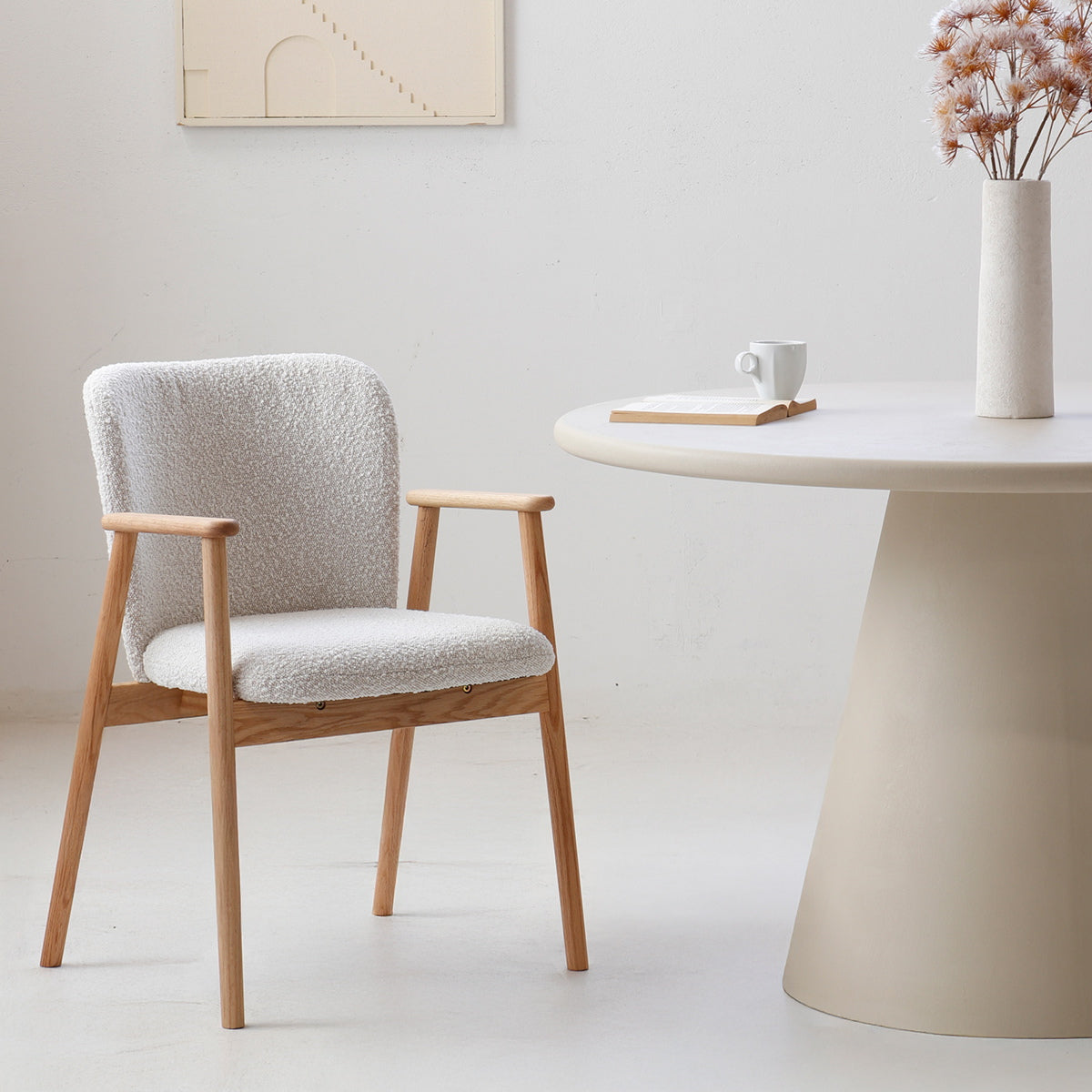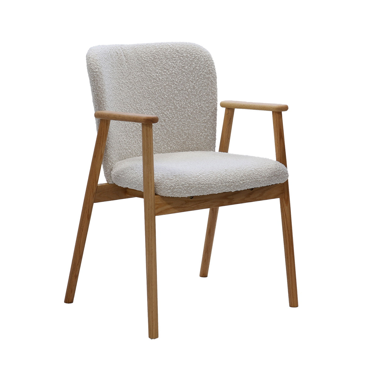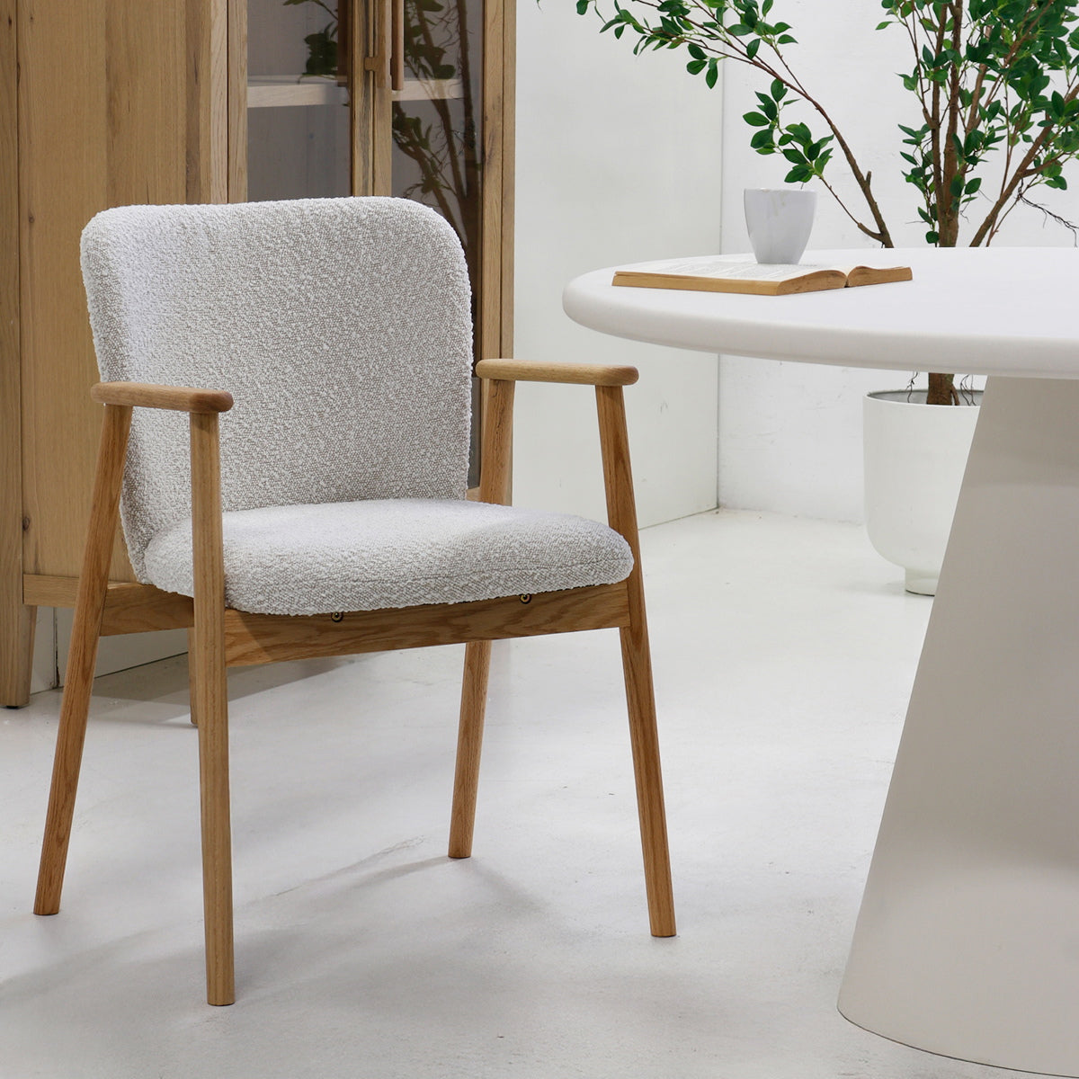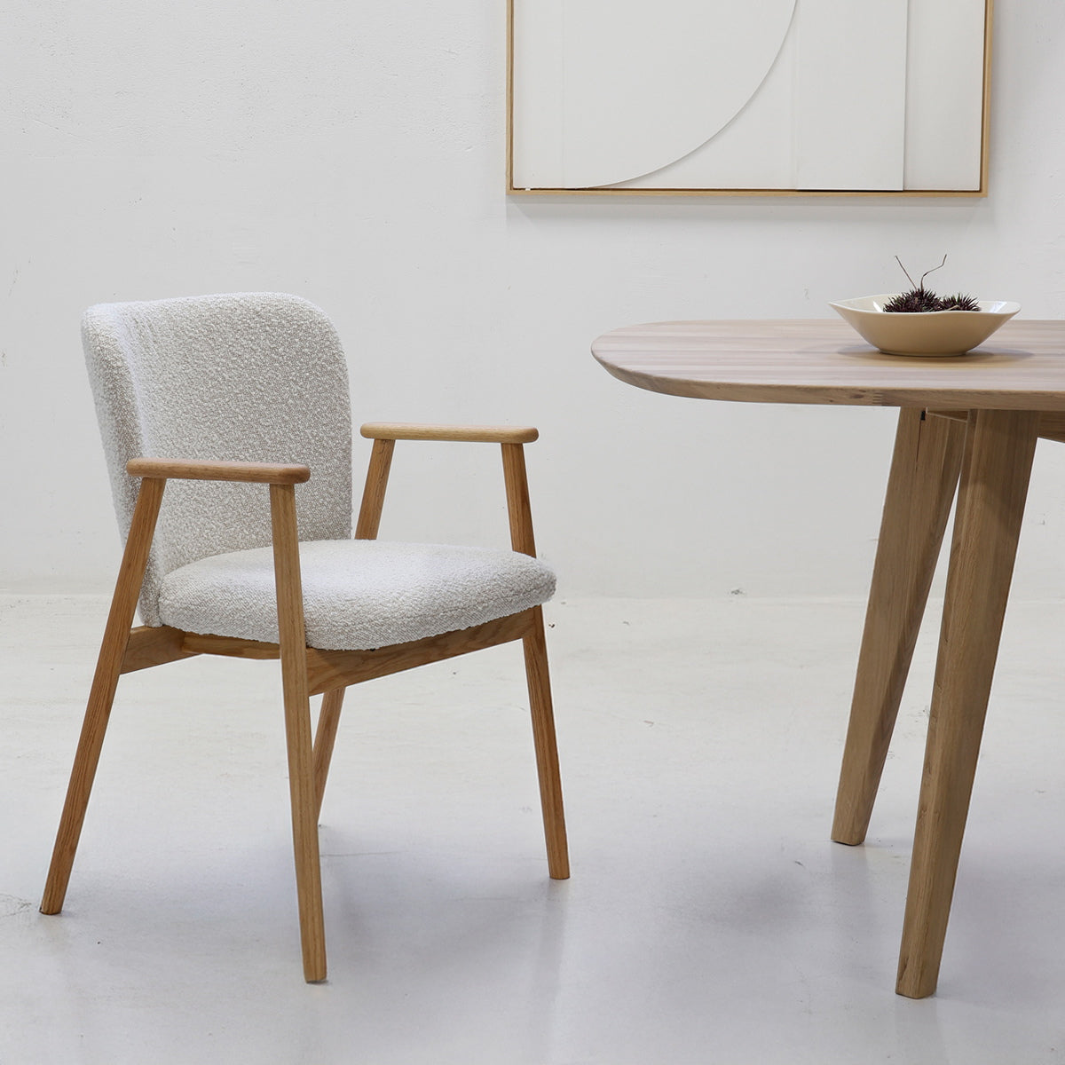 Materiaal: De DÉJA Eetkamerstoel Lena is vervaardigd met een hoogwaardige stof/textiel zitting, wat zorgt voor een zachte en comfortabele zitervaring. Het gebruik van eikenhout in de constructie voegt een natuurlijke en duurzame kwaliteit toe aan het meubelstuk, waardoor het een tijdloze keuze is voor elke eetkamer.