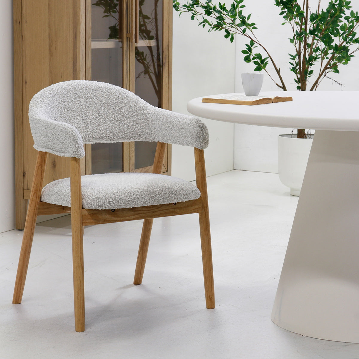 Materiaal: De zitting van de DÉJA Eetkamerstoel Noémi is gemaakt van stof/textiel, wat zorgt voor een zachte en comfortabele zitervaring. Het eikenhouten frame voegt een natuurlijke en stevige basis toe aan het ontwerp, waardoor de stoel zowel duurzaam als elegant is.