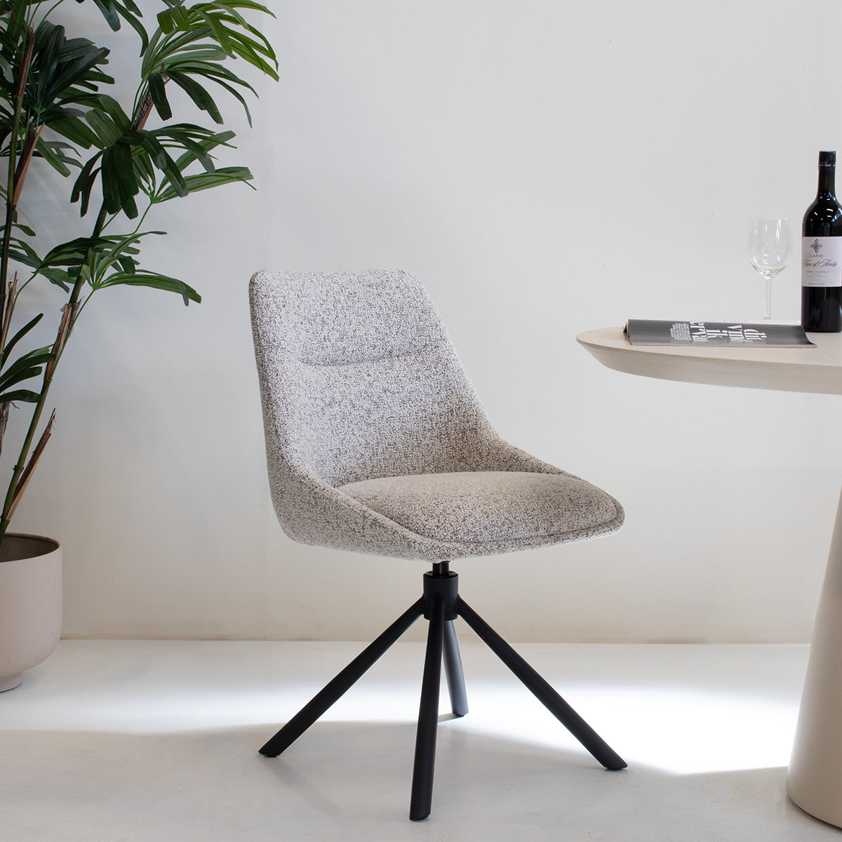 De DÉJA Eetkamerstoel Malou in Beige/Zwart is een verfijnde toevoeging aan je interieur. Met zijn Scandinavische stijl en hoogwaardige stof/metaal constructie, biedt deze stoel zowel comfort als duurzaamheid. De beige kleur van de zitting voegt een warme en uitnodigende sfeer toe aan je eetkamer. De draaibare functie maakt het gemakkelijk om te bewegen en te communiceren, terwijl de stevige metalen basis zorgt voor stabiliteit. Perfect voor dagelijks gebruik en ideaal voor gezellige diners met vrienden en familie.