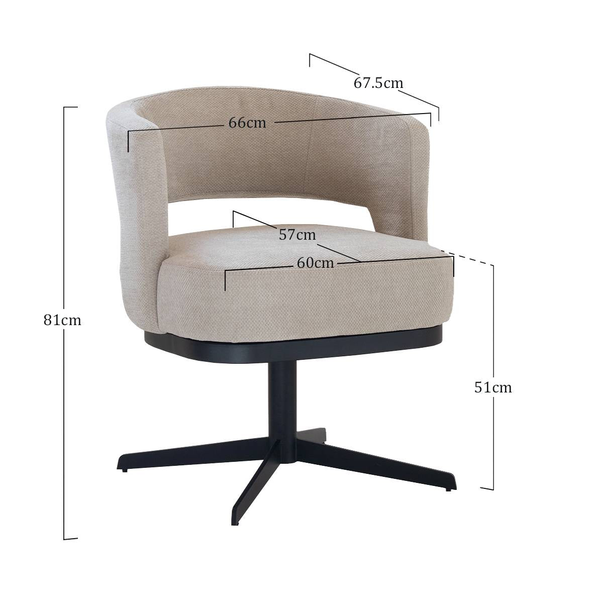 - De zithoogte is 51 cm.