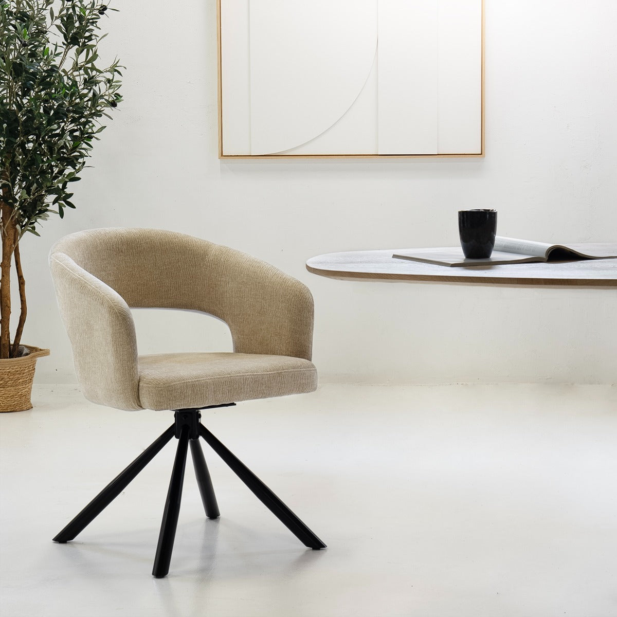 DÉJA Living - Eetkamerstoel Taupe Draaibaar - Stof - Elle - Set van 2