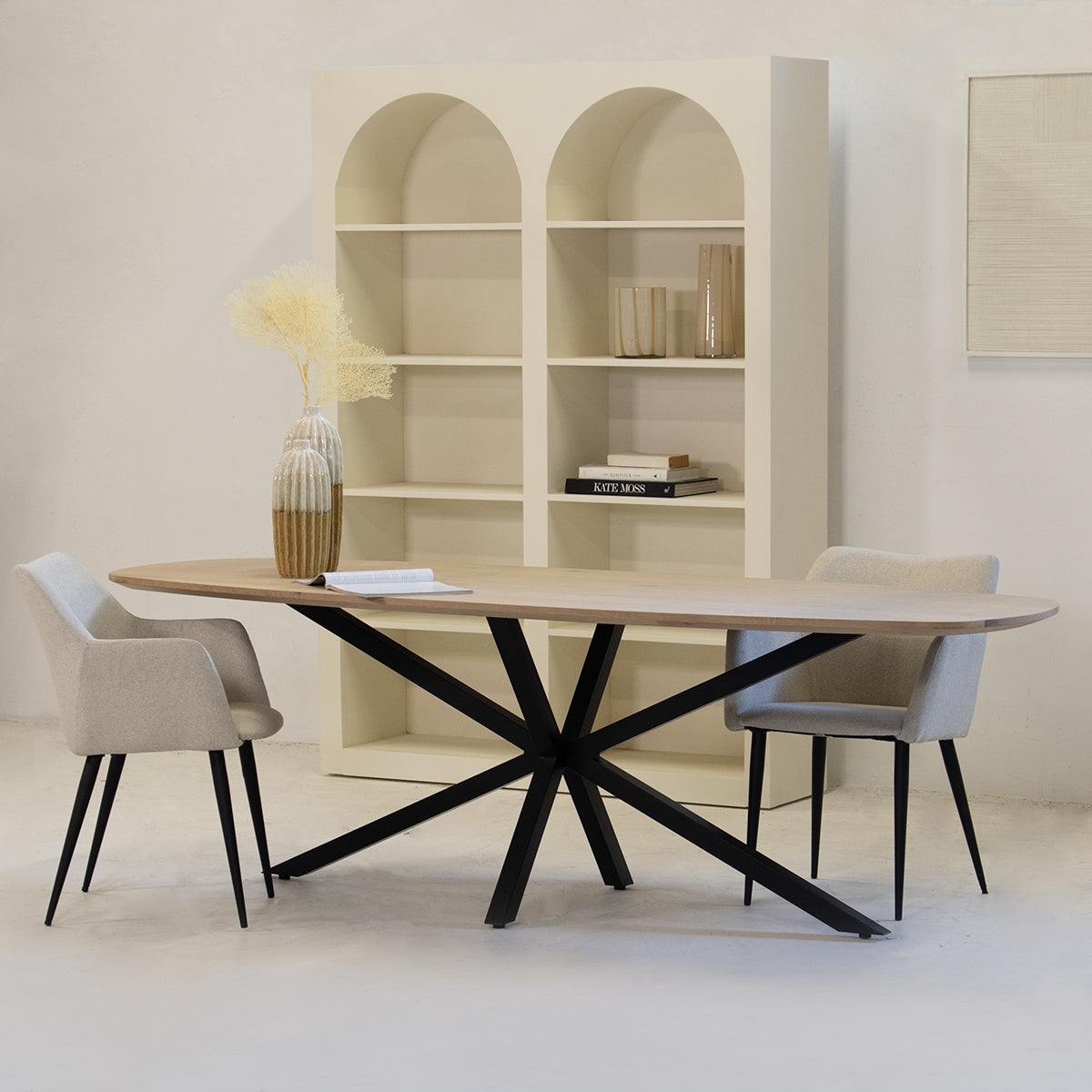 - De vorm van deze tafel is Deens Ovaal. Dit is een mix van een rechthoek en een ovaal. De tafel heeft nu de mooie rondingen van een ovale tafel.