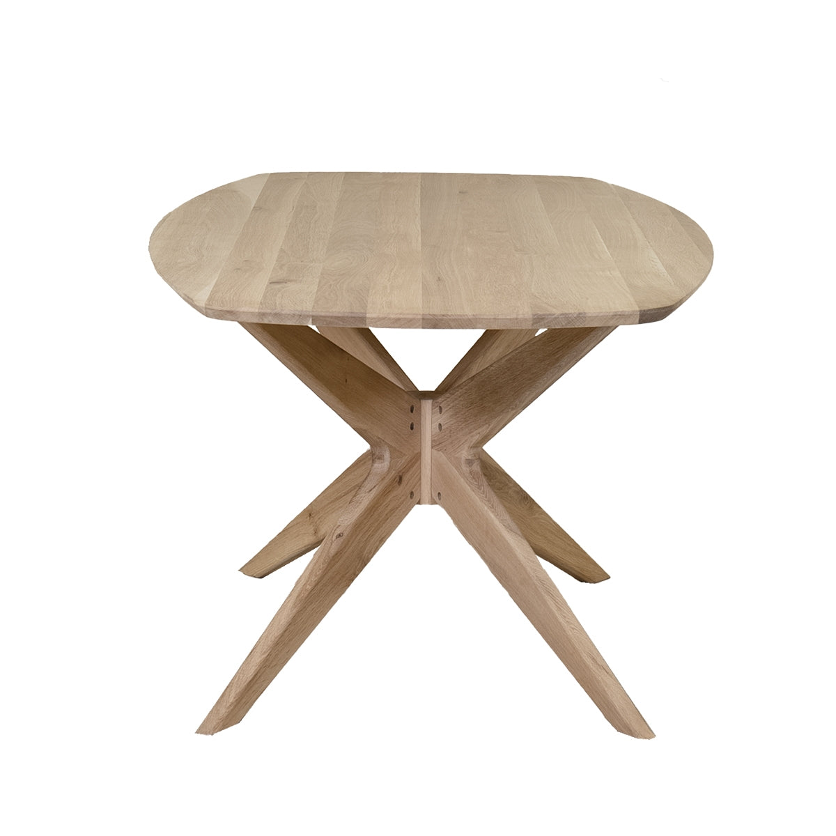 Materiaal: Deze eettafel is vervaardigd uit eikenhout, wat bekend staat om zijn stevigheid en duurzaamheid. Het eikenhouten tafelblad en onderstel zorgen voor een robuuste en natuurlijke uitstraling die jarenlang meegaat.