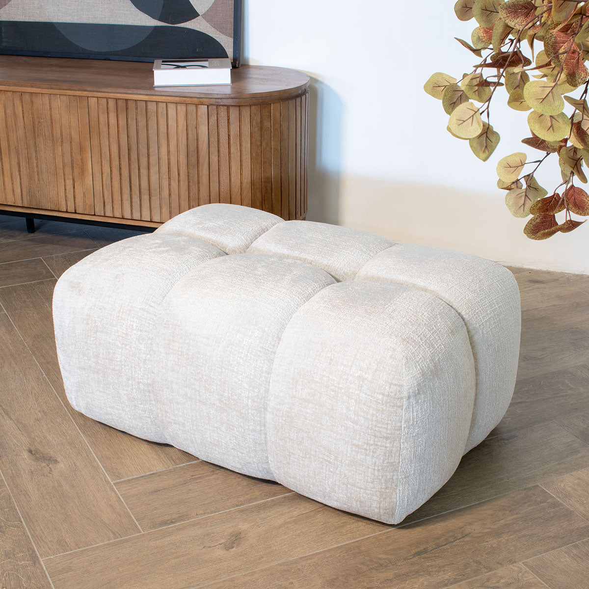 DÉJA Living - Poef Stof Beige - 90x64x44cm - Zithoogte 44cm - Maël
