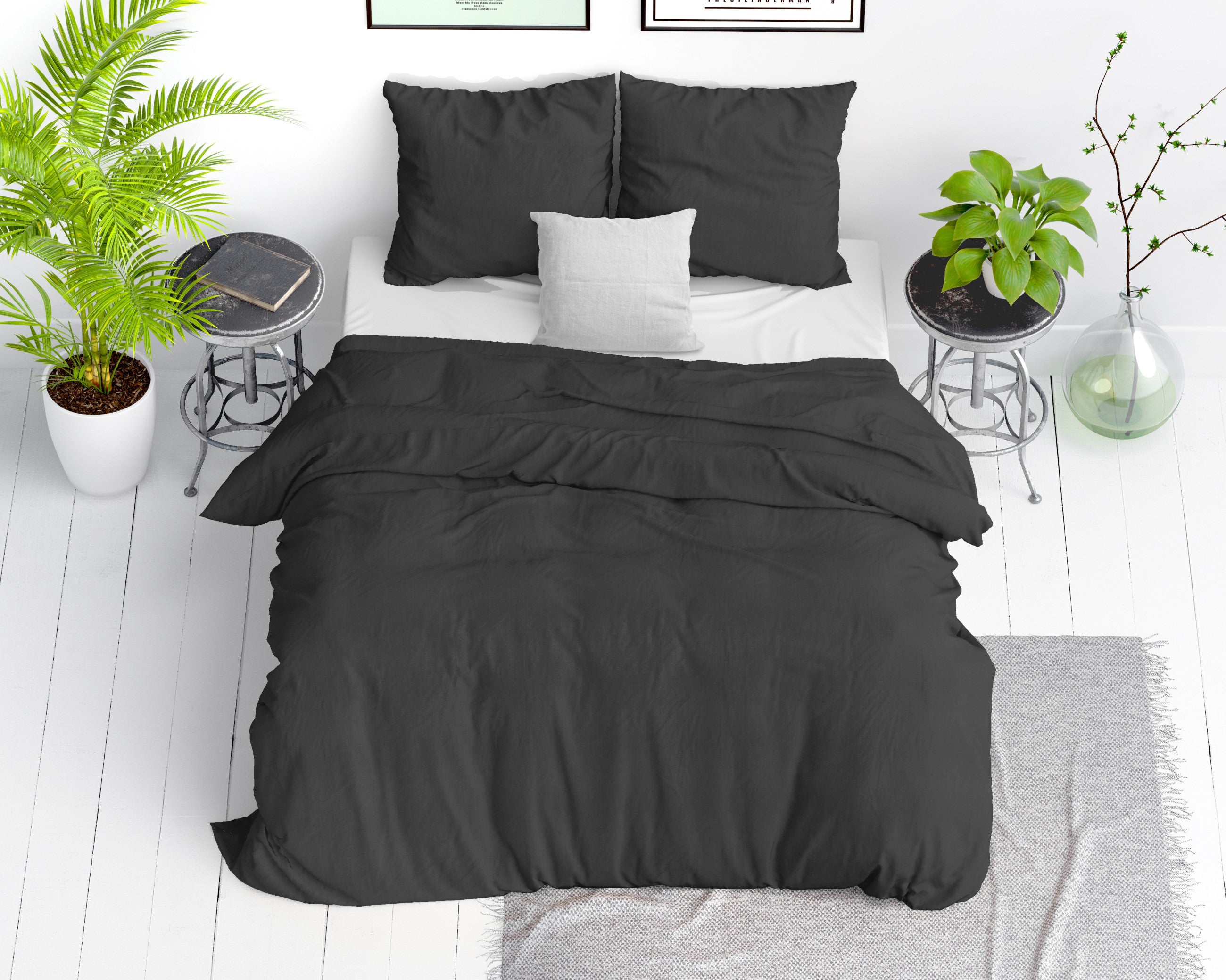 Dekbedovertrek Stone Washed - 100% Natuurlijk - Antraciet - 140x220cm