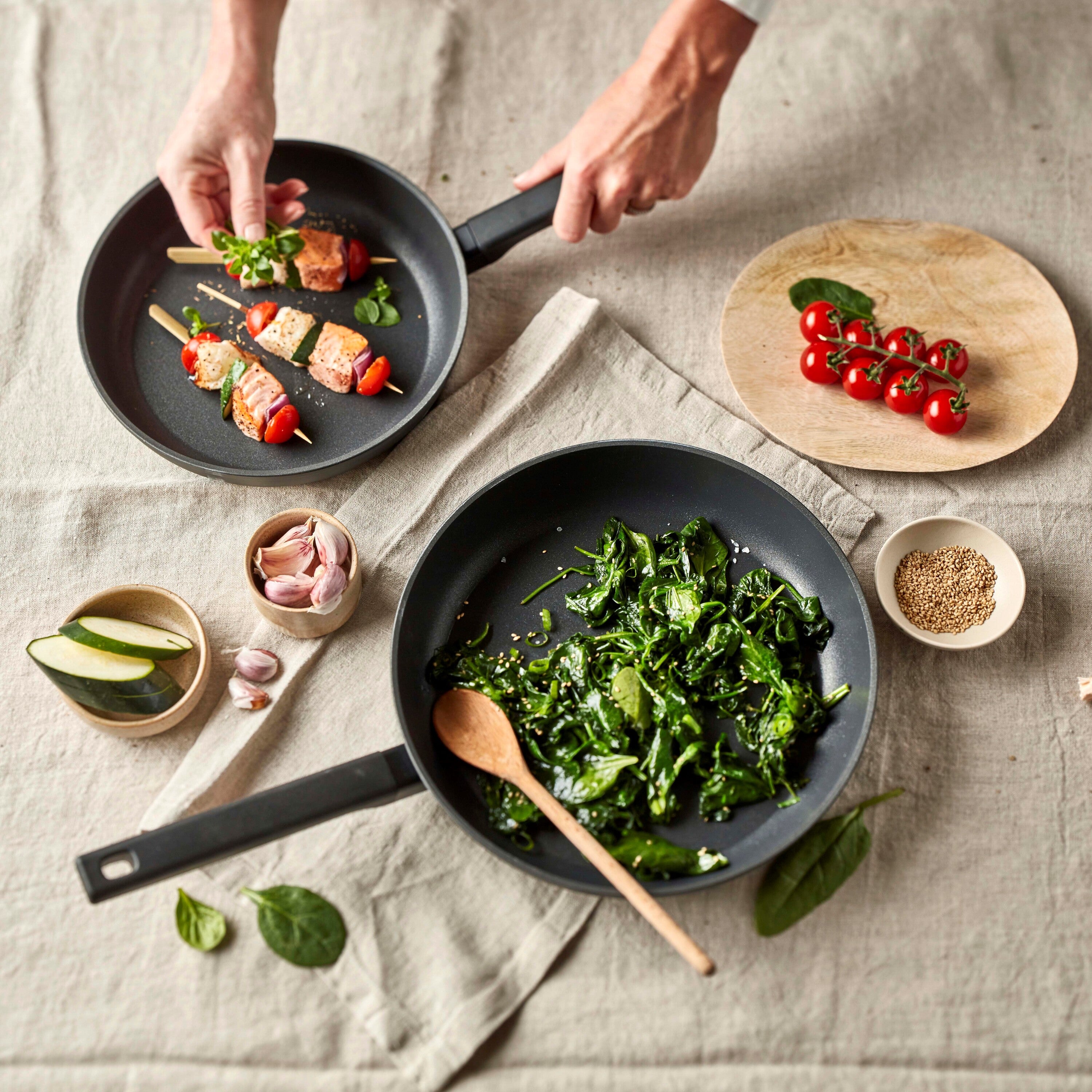- Set van twee koekenpannen Ø20 en 30 cm