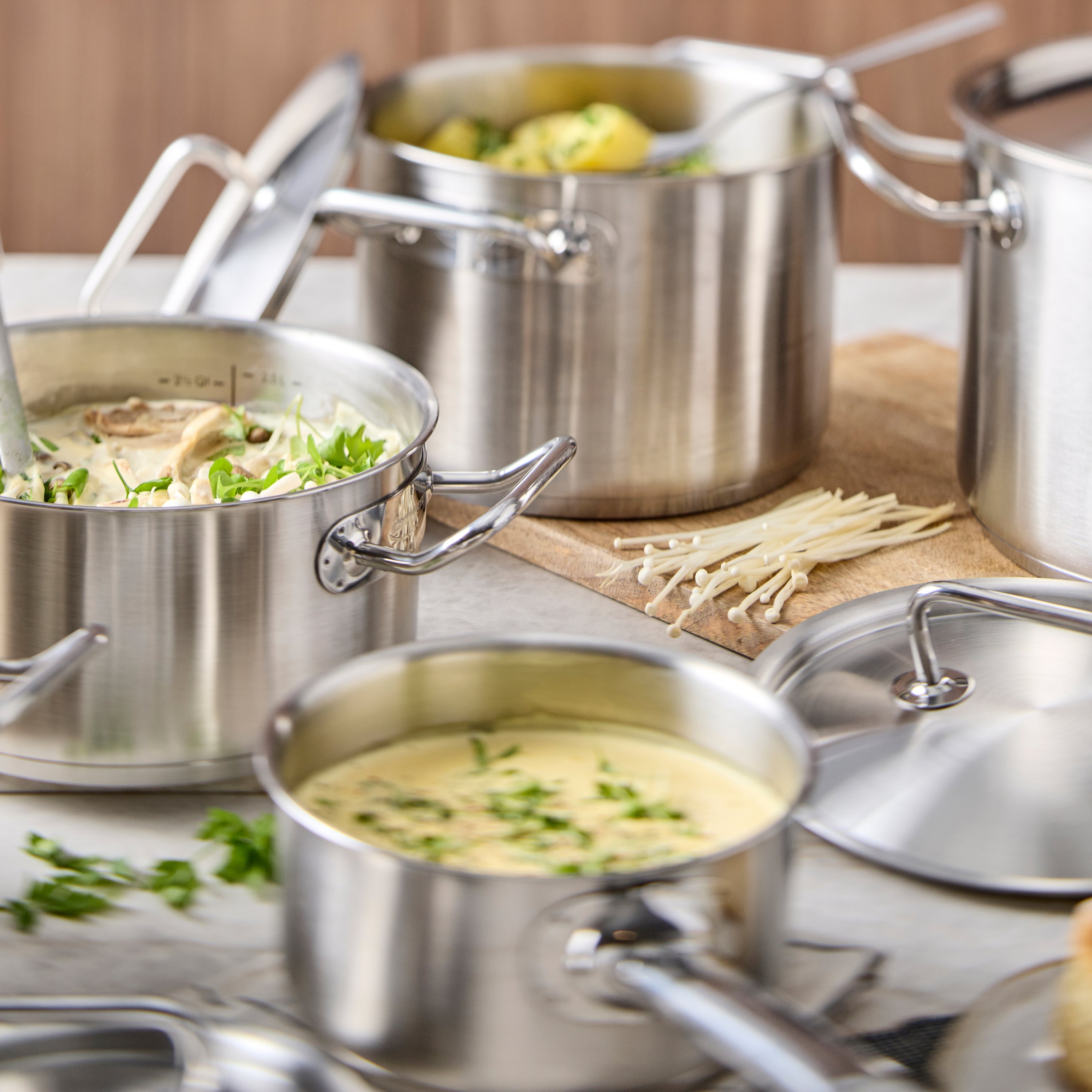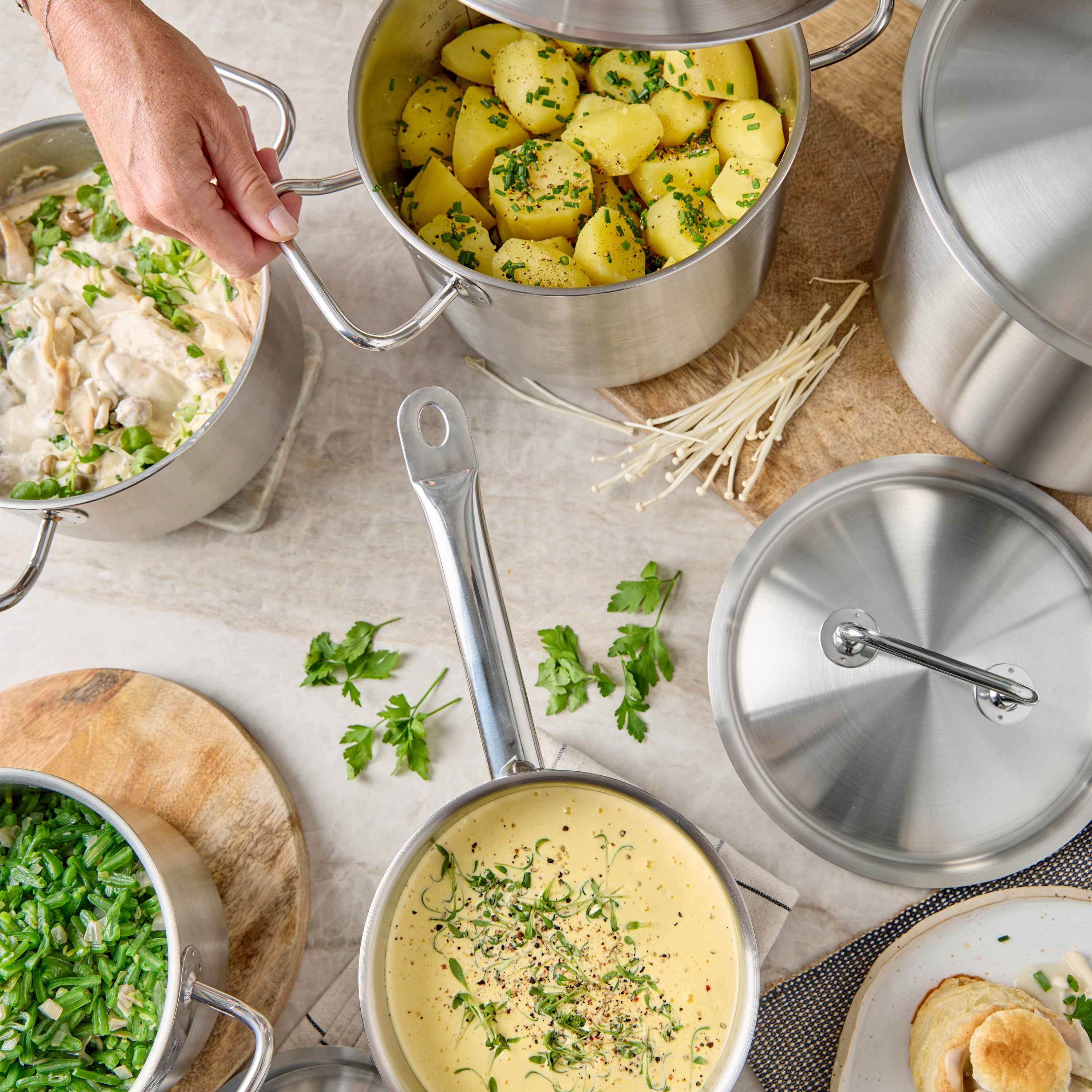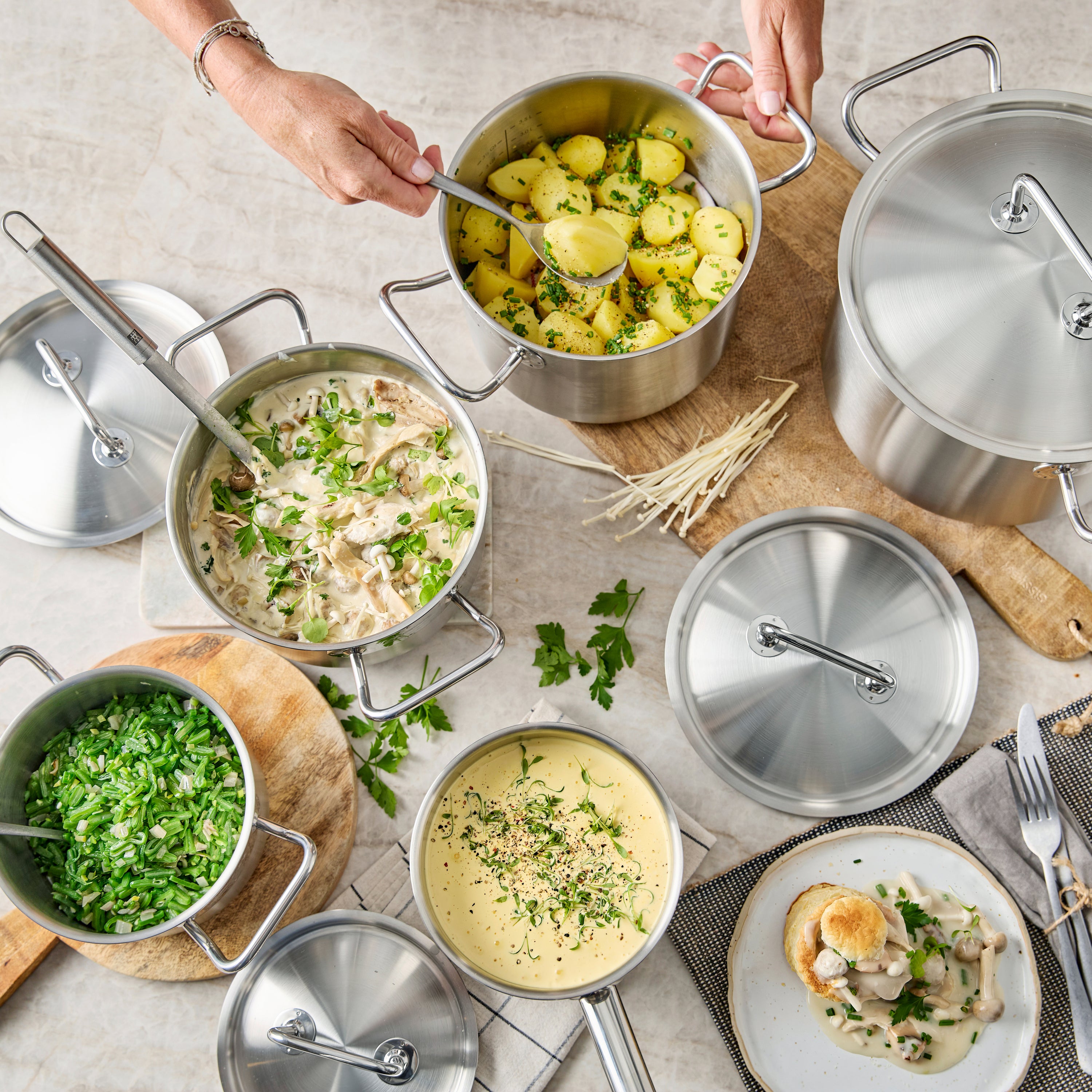 - Set van 5 pannen: 2 kookpannen, 2 soeppannen en een steelpan