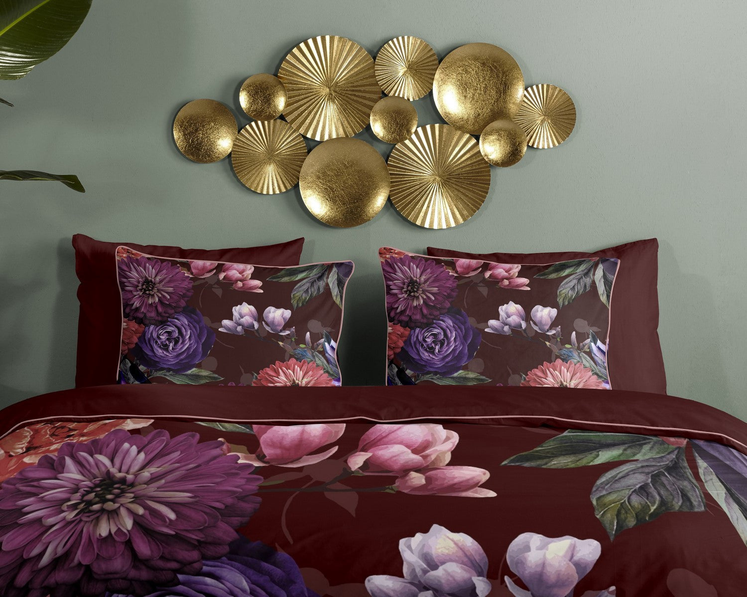 Dekbedovertrek Bloomie van Descanso: de perfecte mix van schoonheid, slimheid en duurzaamheid Het is tijd om jouw slaapkamer naar een hoger niveau te tillen met het prachtige dekbedovertrek Bloomie van Descanso. Dit opvallende ontwerp is een echte eyecatcher en brengt een vleugje kleur en levendigheid in elke slaapkamer. Het design toont mooie bloemen op een bordeauxrode achtergrond met paarse, roze en groene accenten, waardoor het dekbedovertrek een levendige uitstraling heeft. De effen bordeauxrode achterkant voegt rust toe aan het drukke ontwerp, wat zorgt voor een ontspannen slaapervaring.