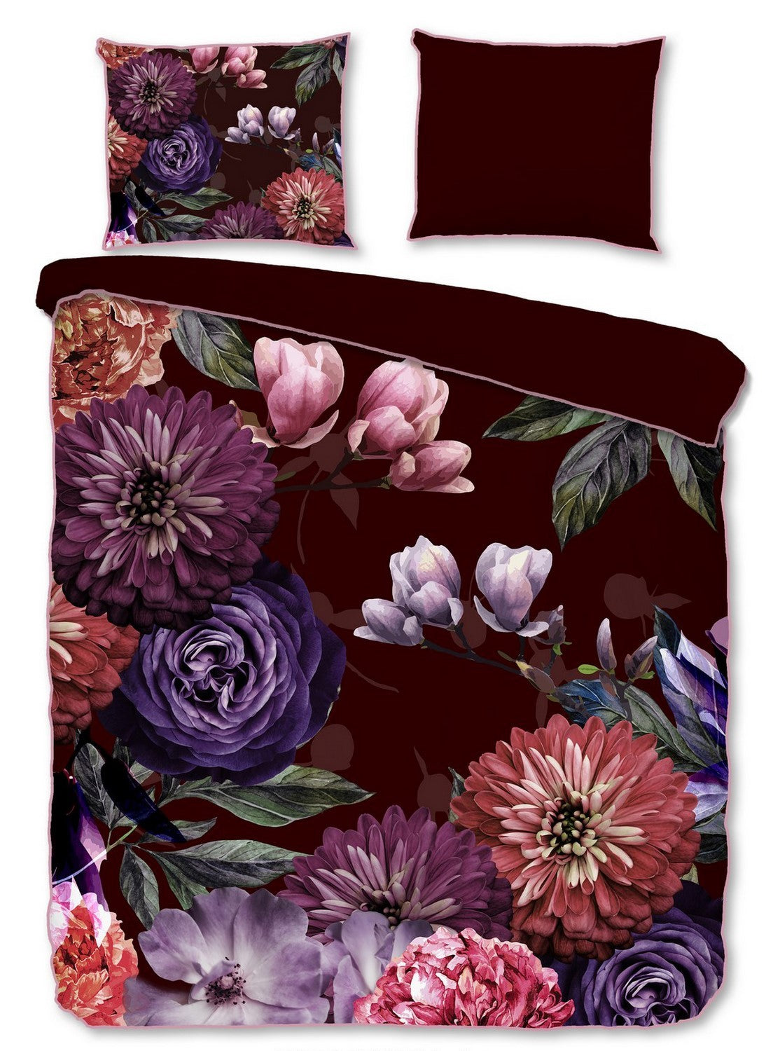 Dekbedovertrek Bloomie van Descanso: de perfecte mix van schoonheid, slimheid en duurzaamheid Het is tijd om jouw slaapkamer naar een hoger niveau te tillen met het prachtige dekbedovertrek Bloomie van Descanso. Dit opvallende ontwerp is een echte eyecatcher en brengt een vleugje kleur en levendigheid in elke slaapkamer. Het design toont mooie bloemen op een bordeauxrode achtergrond met paarse, roze en groene accenten, waardoor het dekbedovertrek een levendige uitstraling heeft. De effen bordeauxrode achterkant voegt rust toe aan het drukke ontwerp, wat zorgt voor een ontspannen slaapervaring.