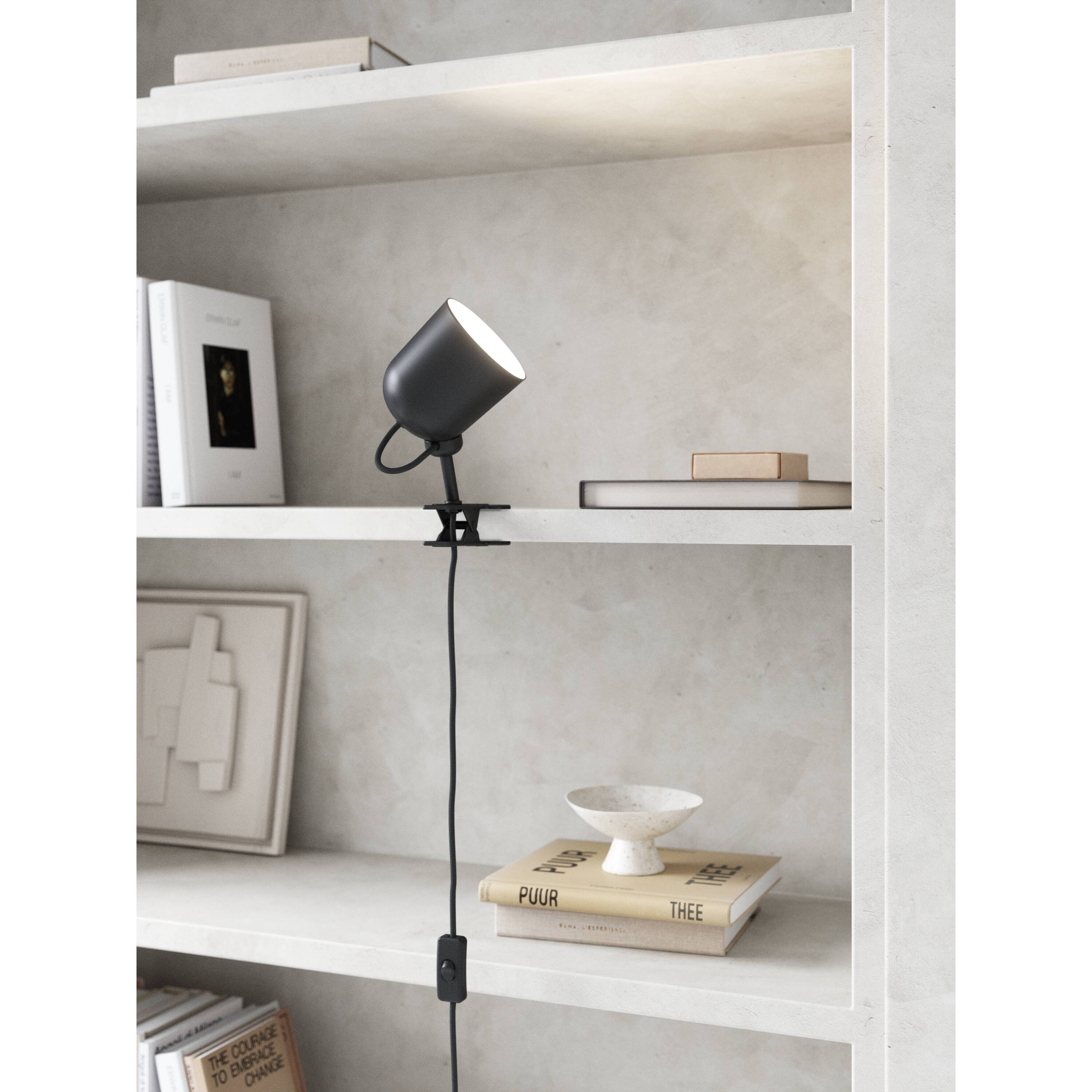 De Angle-serie van de Deense ontwerpster Maria Berntsen heeft een moderne en tijdloze designuitdrukking. De lamp is uitgevoerd in een speels en interactief ontwerp met een magnetisch bevestigde kap die eenvoudig naar wens kan worden aangepast. Draai, kantel of verplaats de kap voor een gericht of indirect licht. De lamp heeft een praktische klem die het mogelijk maakt de lamp te plaatsen op een plank, een boekenkast of waar u maar wilt om geselecteerde details in uw interieur te benadrukken.
