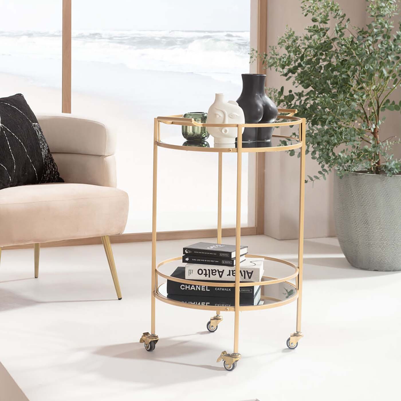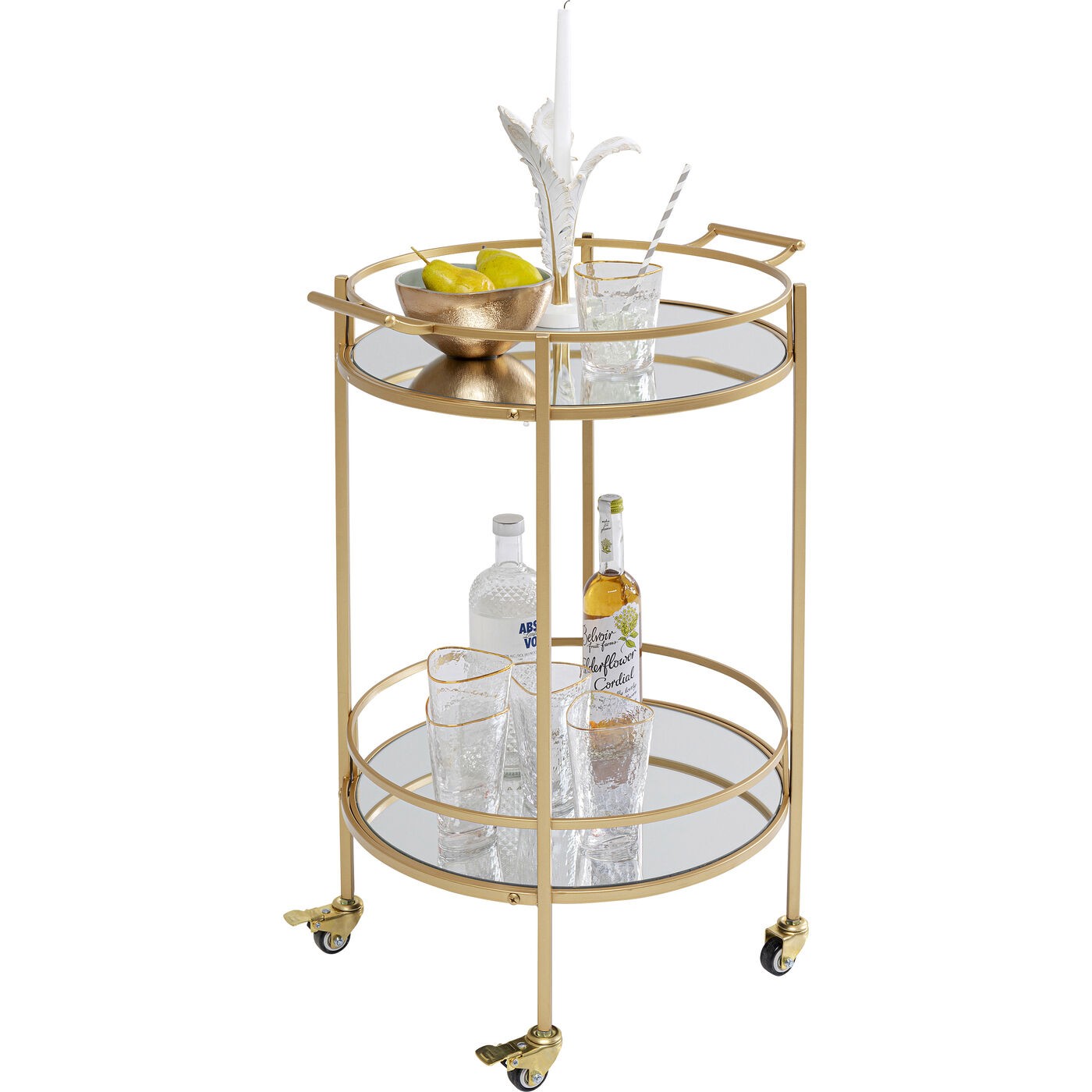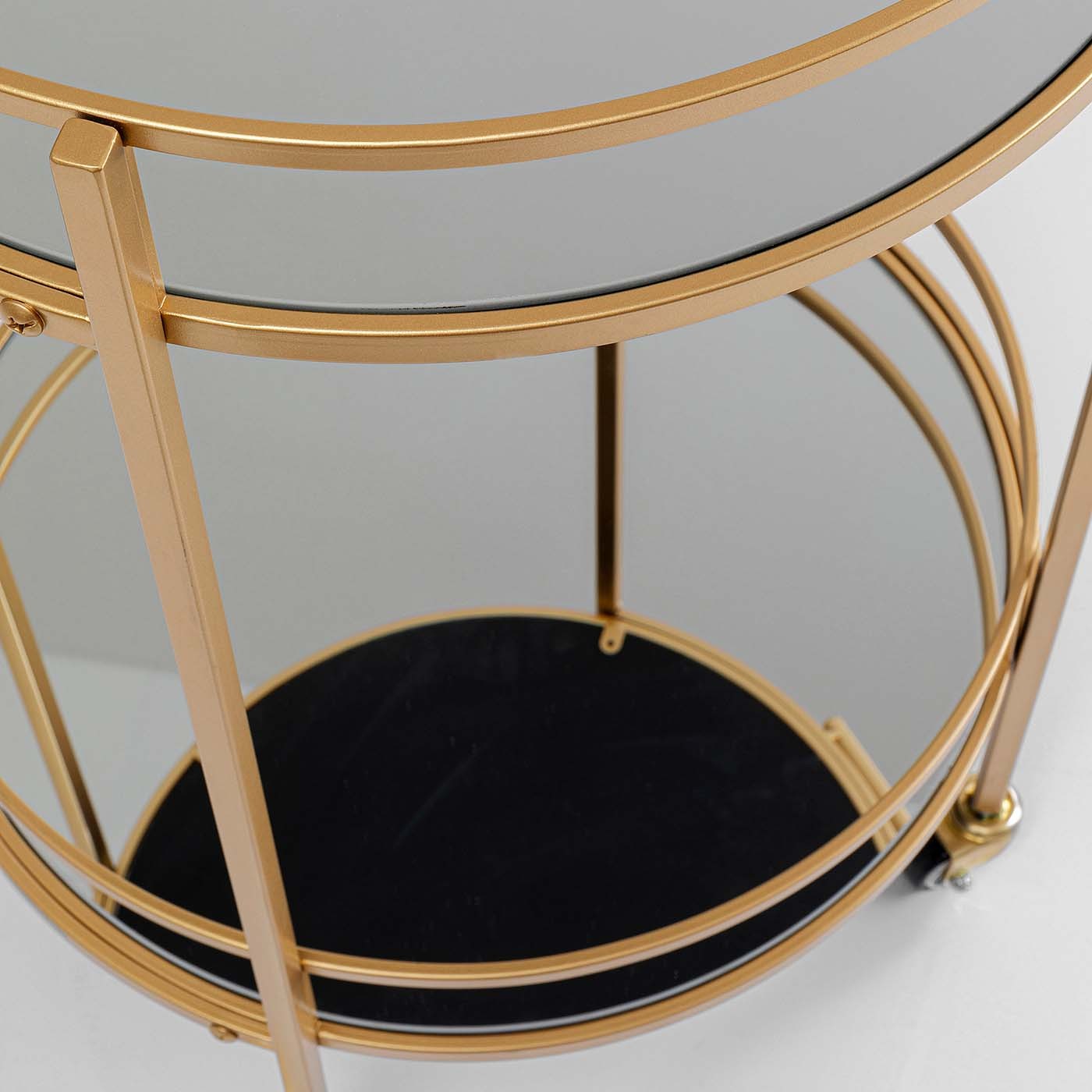- Glamoureuze trolley met gouden en spiegelaccenten voor een luxueuze uitstraling in uw interieur.