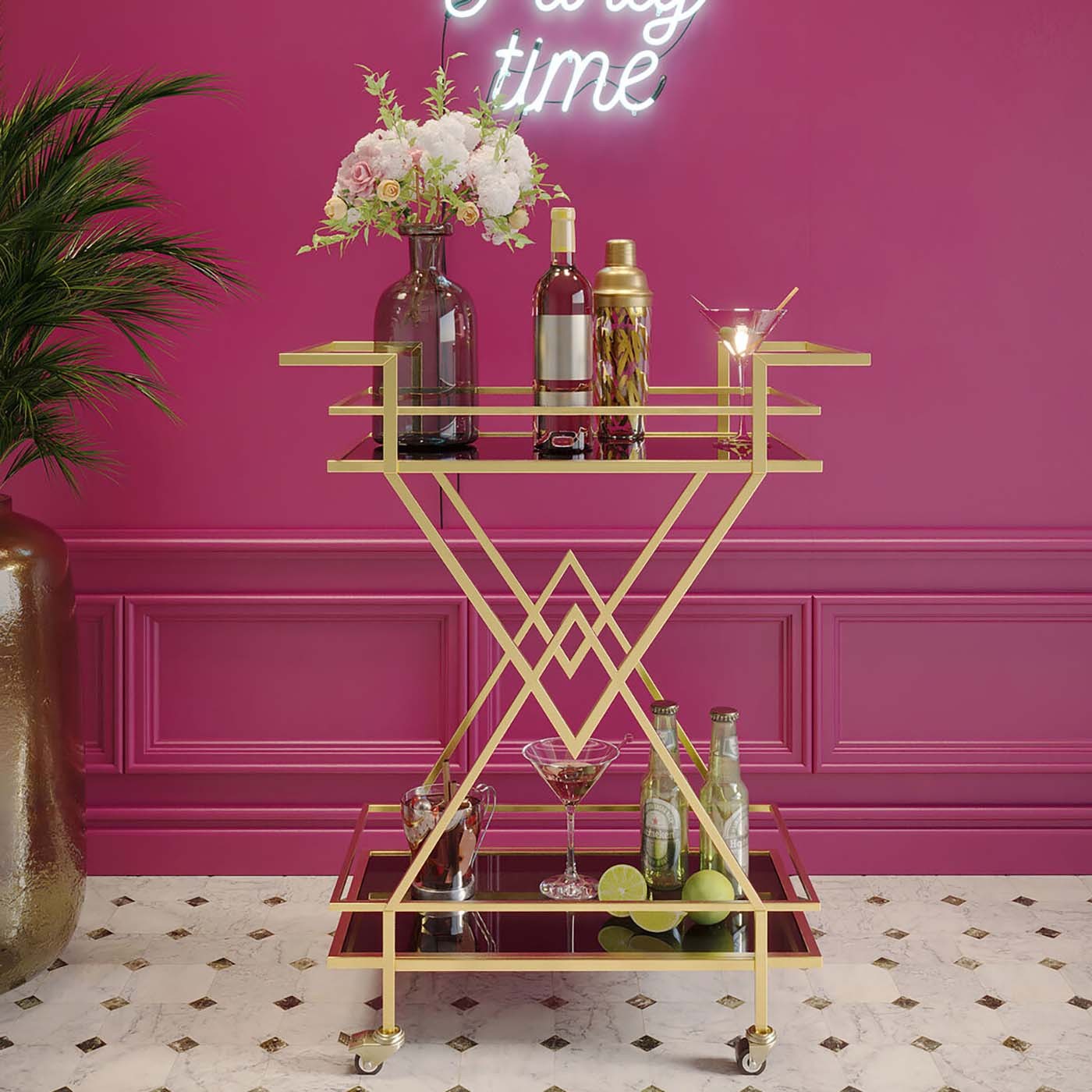 - Gelakte afwerking beschermt tegen dagelijkse slijtage en accentueert de glamourstijl van de trolley.