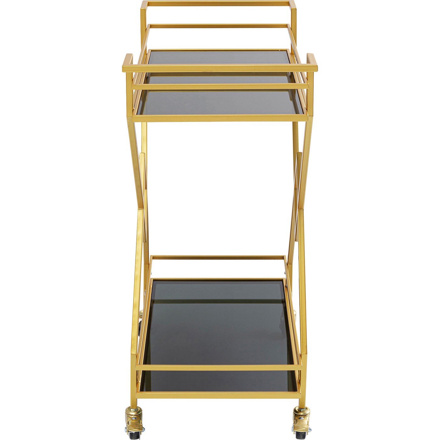 - Glamoureuze trolley met gouden accenten en strakke grijze afwerking voor een luxe uitstraling.