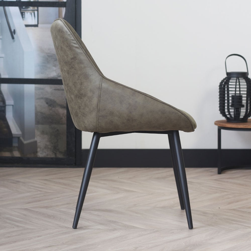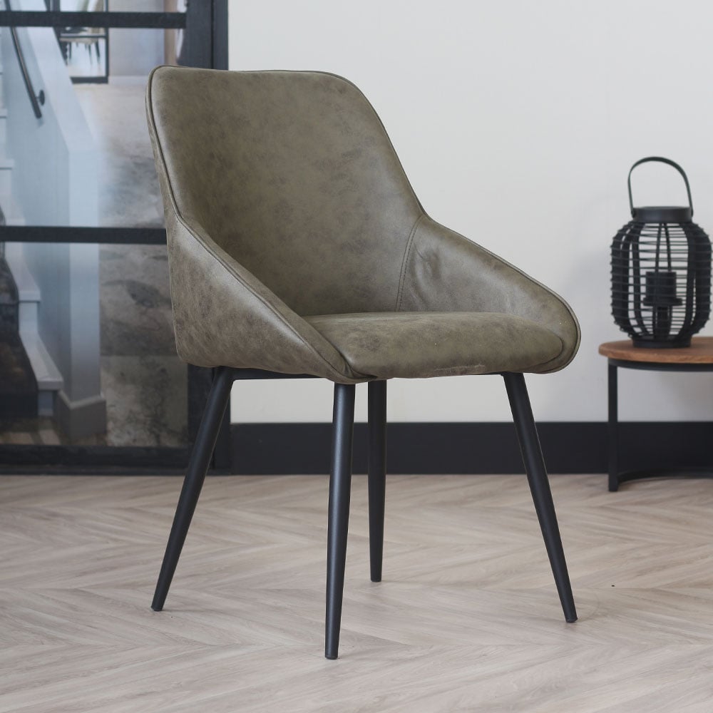Het mooie soepele ecoleer zorgt voor een moderne, stijlvolle en tijdloze uitstraling. Het zwart metalen frame zorgt voor een stoere touch. Een trendy eetkamerstoel met een hoog comfort.