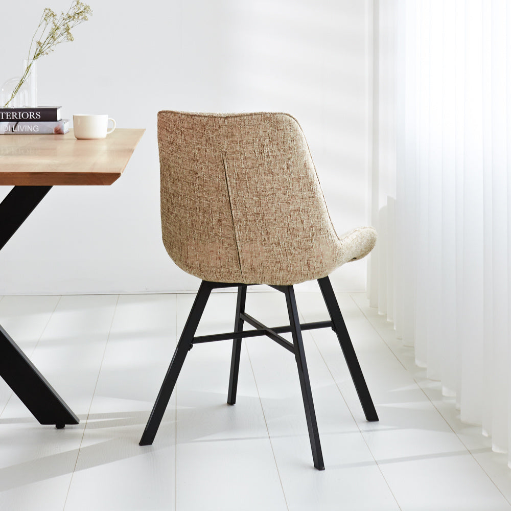 Eetkamerstoel Jada is een stijlvol ontwerp gemaakt van comfortabel chenille en zwart stoer metaal. De stoel beschikt over een comfortabele zitting waar je uren op kunt tafelen!