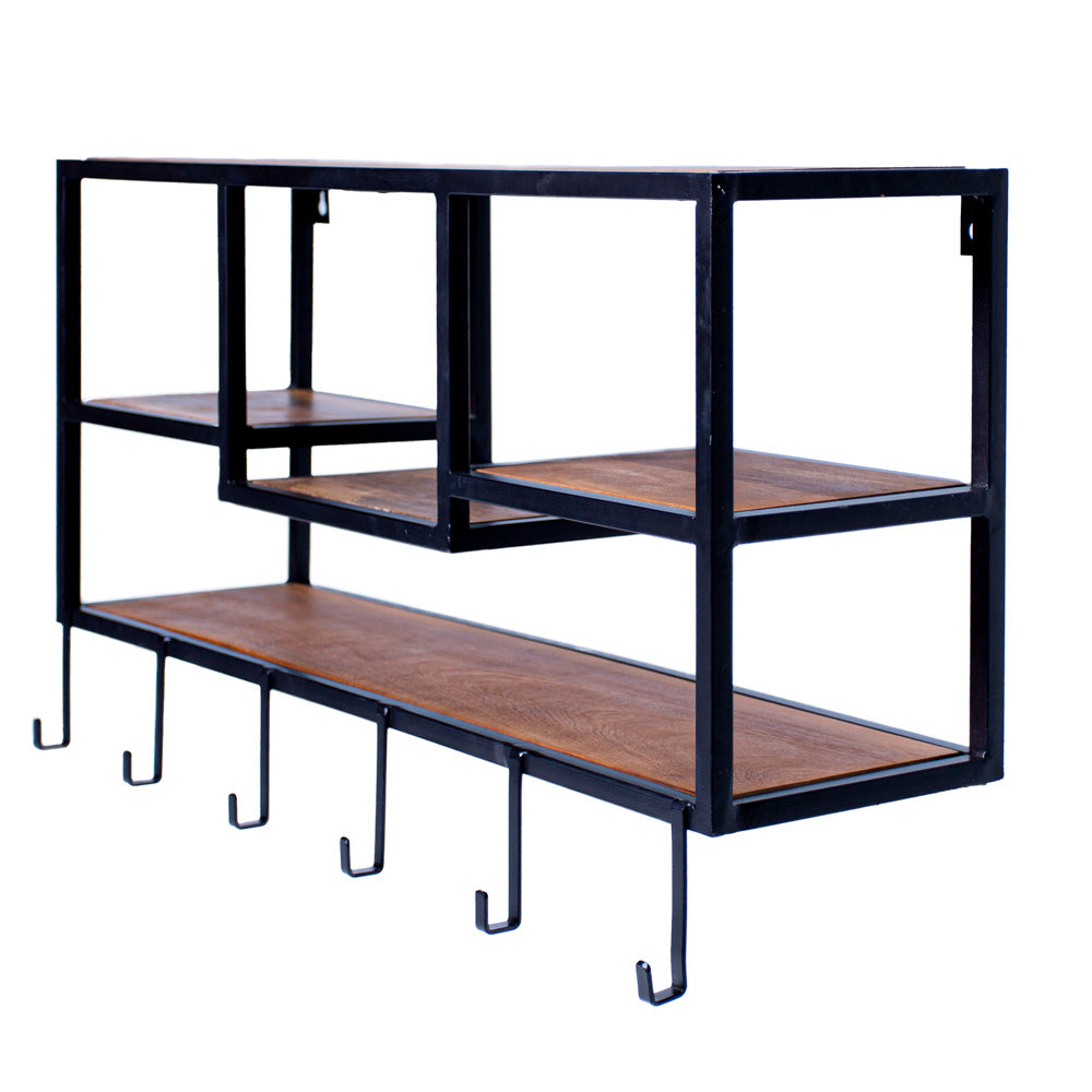 Wandrek industrieel Jessy is een stoer wandrek met maar liefst vijf asymmetrische leggers en zes haken. Hierdoor beschik je door wandrek Jessy over voldoende opberg- en decoratieruimte. Dit wandrek is ideaal in de keuken, hal of woonkamer, maar past ook ideaal in je kantoor! Het mangohout in combinatie met het gepoedercoat metaal geeft dit trendy wandrek een stoer uiterlijk, maar dankzij de gebruikte materialen komt het wandrek in elk interieur tot zijn recht.