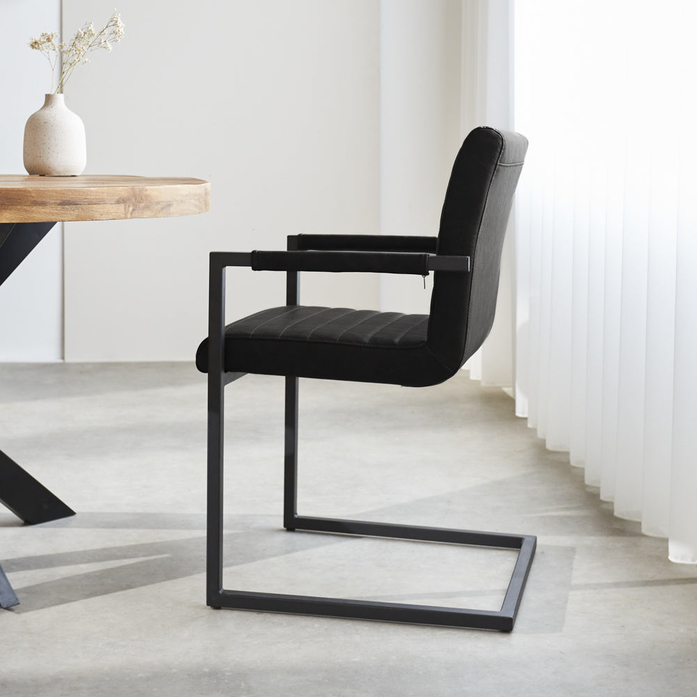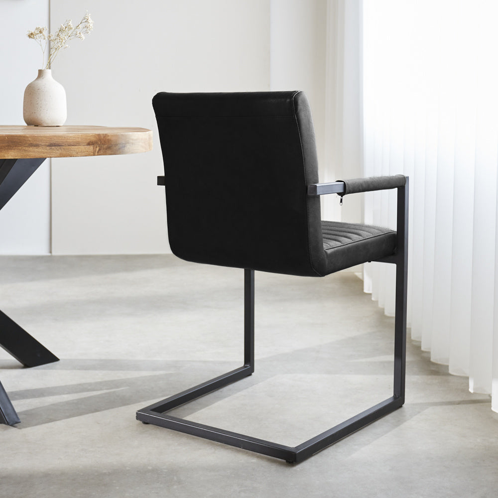 De industriële eetkamerstoel Kuba is de perfecte toevoeging aan een stoer interieur. Met zijn stoere zitting met horizontale naden en zwart gepoedercoat frame de ideale musthave in je interieur!