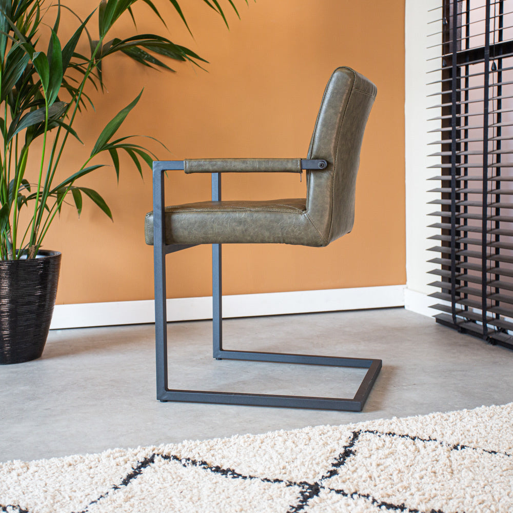 Eetkamerstoel Mick is een comfortabele toevoeging in de eetkamer. De eetkamerstoel is gemaakt van ecoleer en bevat armleuningen voor extra comfort. De zitting beschikt over een chic ruitpatroon. Eetkamerstoel Mick bevat een stoer zwart gepoedercoat metalen frame. De stoel is afkomstig van het merk Cyrus Benson, een merk dat meubels van goede kwaliteit voor betaalbare prijzen ontwikkeld. Eetkamerstoel Mick is een combinatie van stijlvol, stoer én comfortabel.