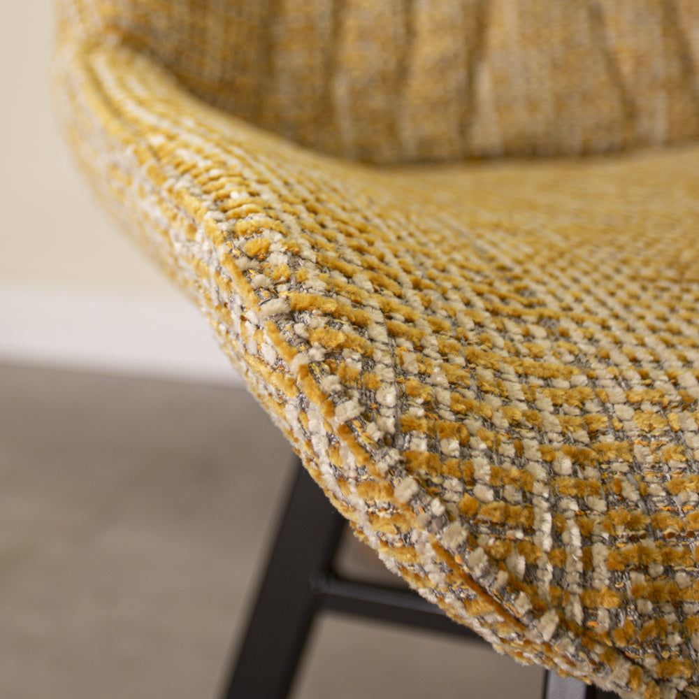 Materiaal frame Het robuuste frame is gemaakt van zwart metaal en zorgt in combinatie met de chenille zitting voor een elegante, maar stoere uitstraling. Onder dit product zitten vloerdoppen die laminaat beschermen tegen krassen. Er worden viltjes meegeleverd om overige vloeren te beschermen tegen krasvorming.