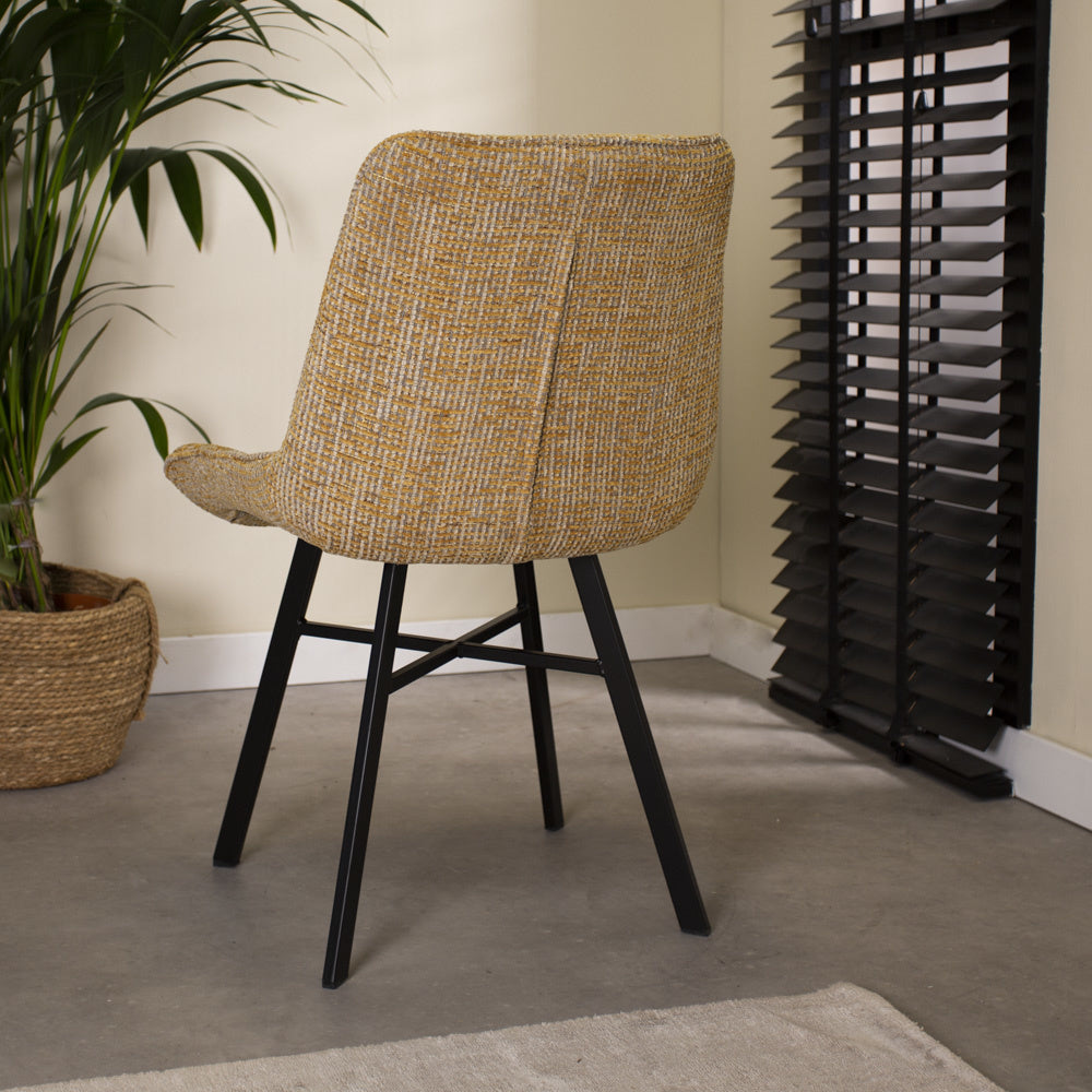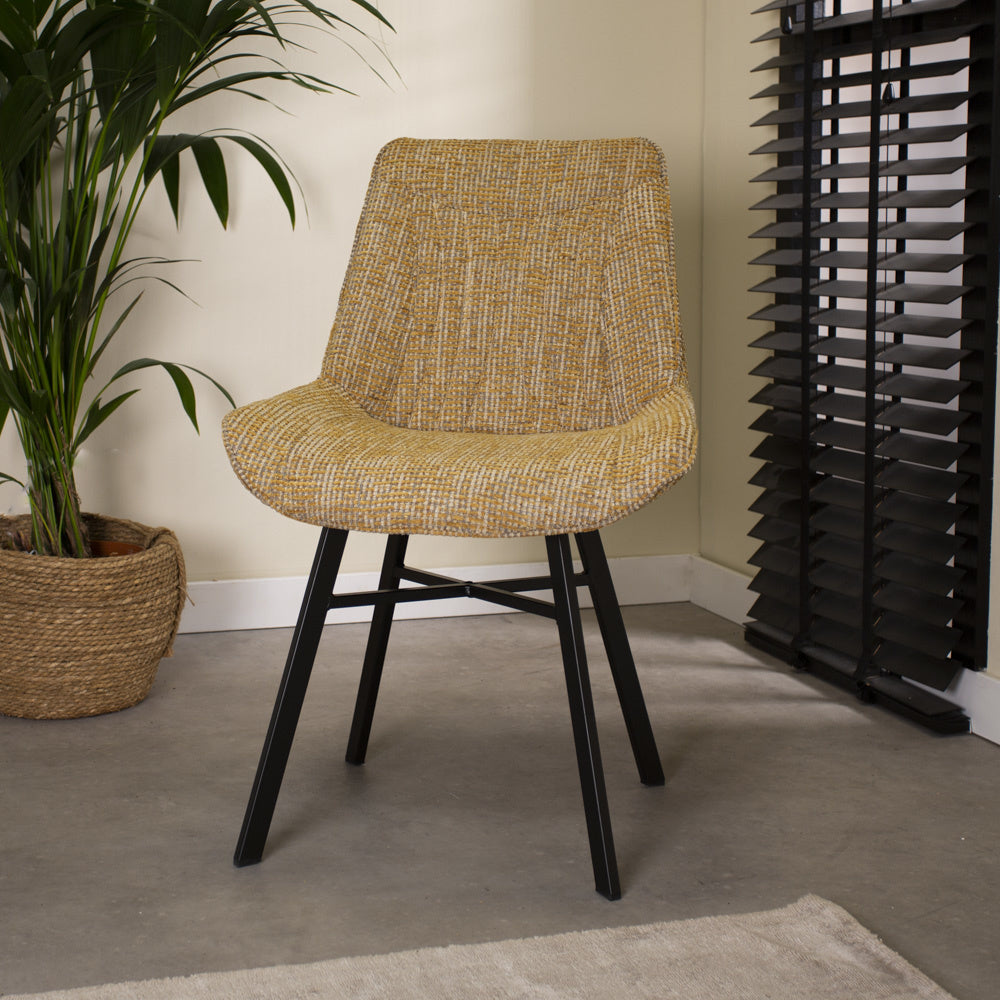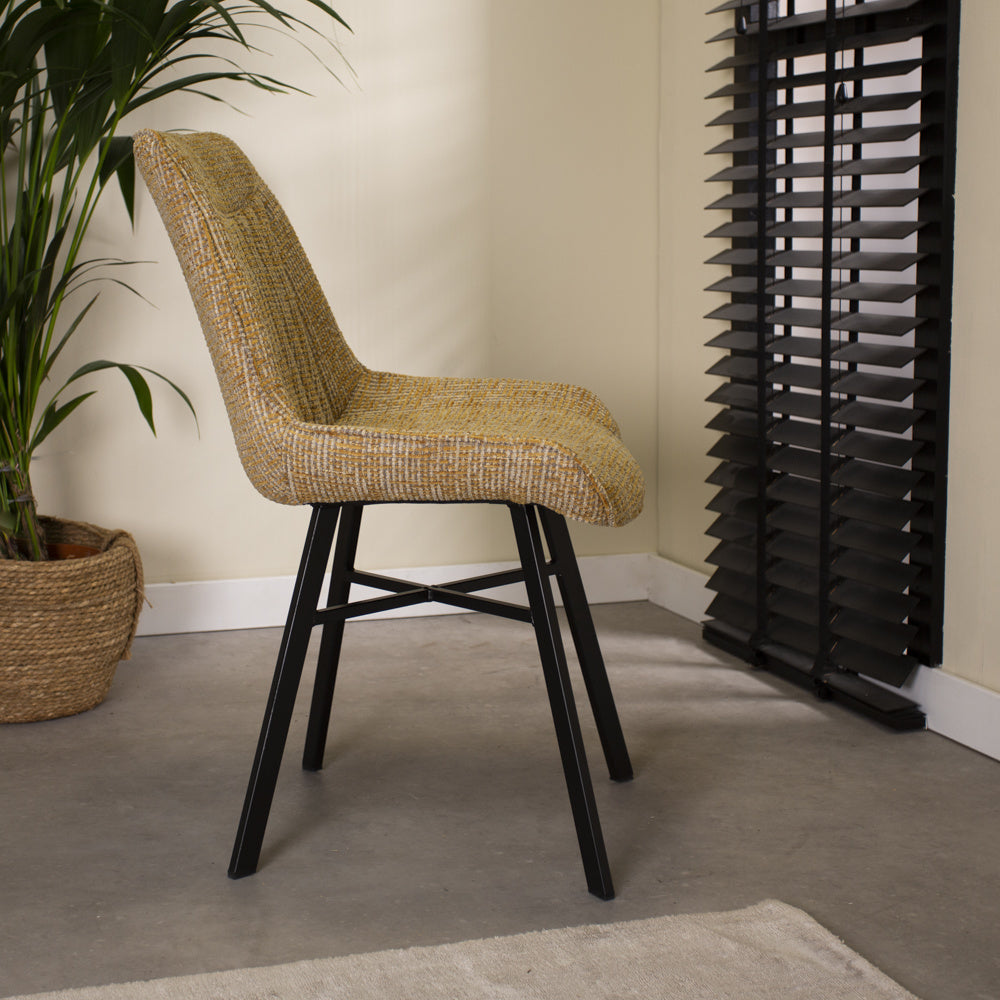 Eetkamerstoel Rosalie is een stijlvol ontwerp gemaakt van comfortabel chenille en zwart stoer metaal. De stoel beschikt over een comfortabele zitting waar je uren op kunt tafelen!