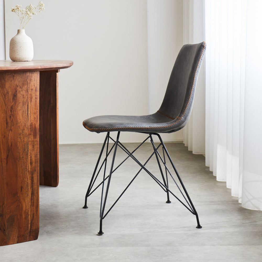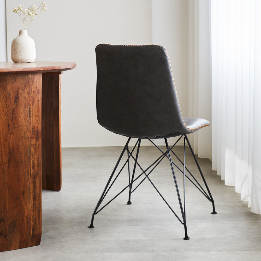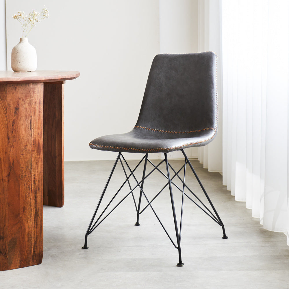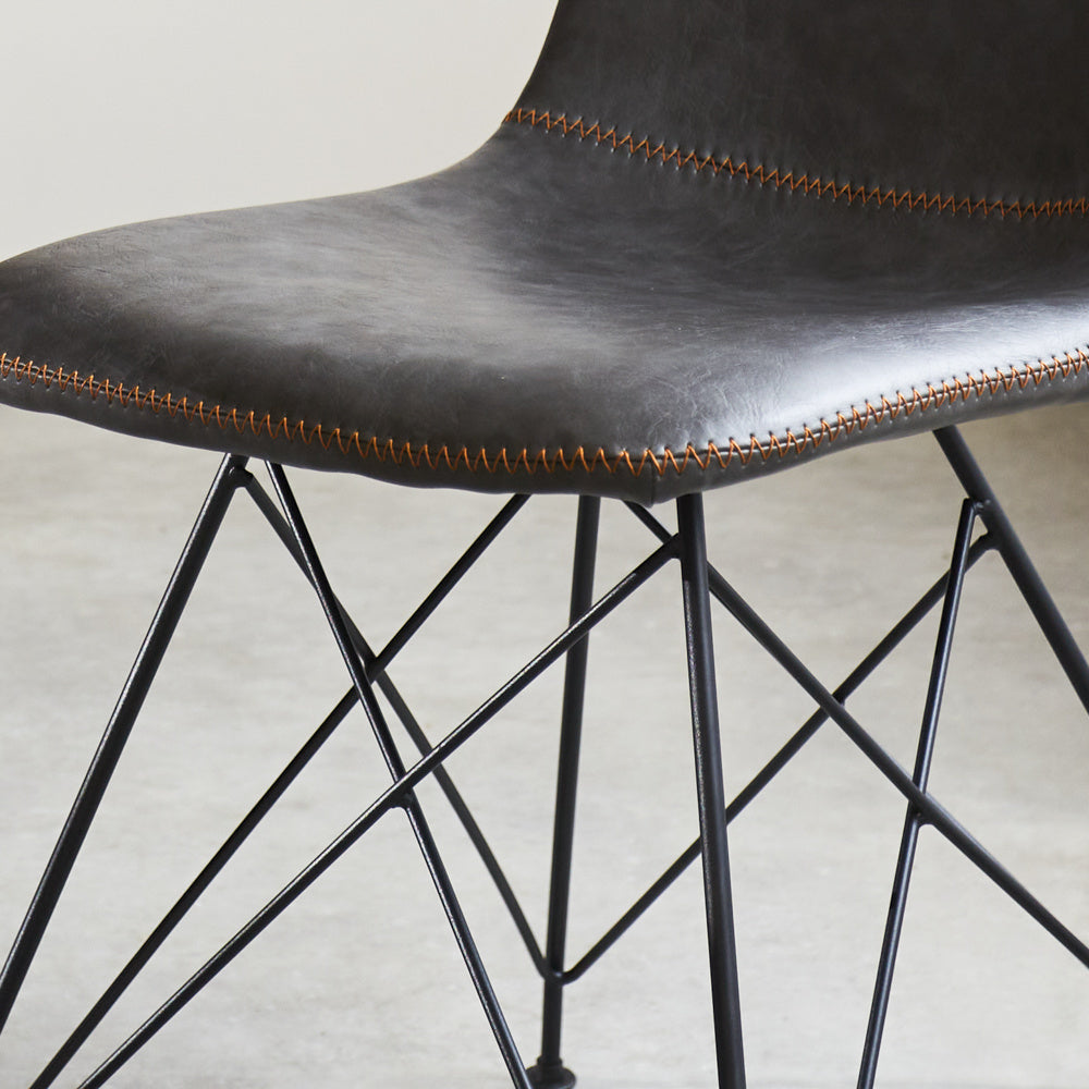 De kuipstoel Viano is een oersterk en stoer model! Op deze kuipstoelen kun je uren zitten en lekker tafelen met het hele gezin. De industriële eetkamerstoel Viano heeft een mooi zwart gepoedercoat frame met kunstlederen bekleding met opvallende