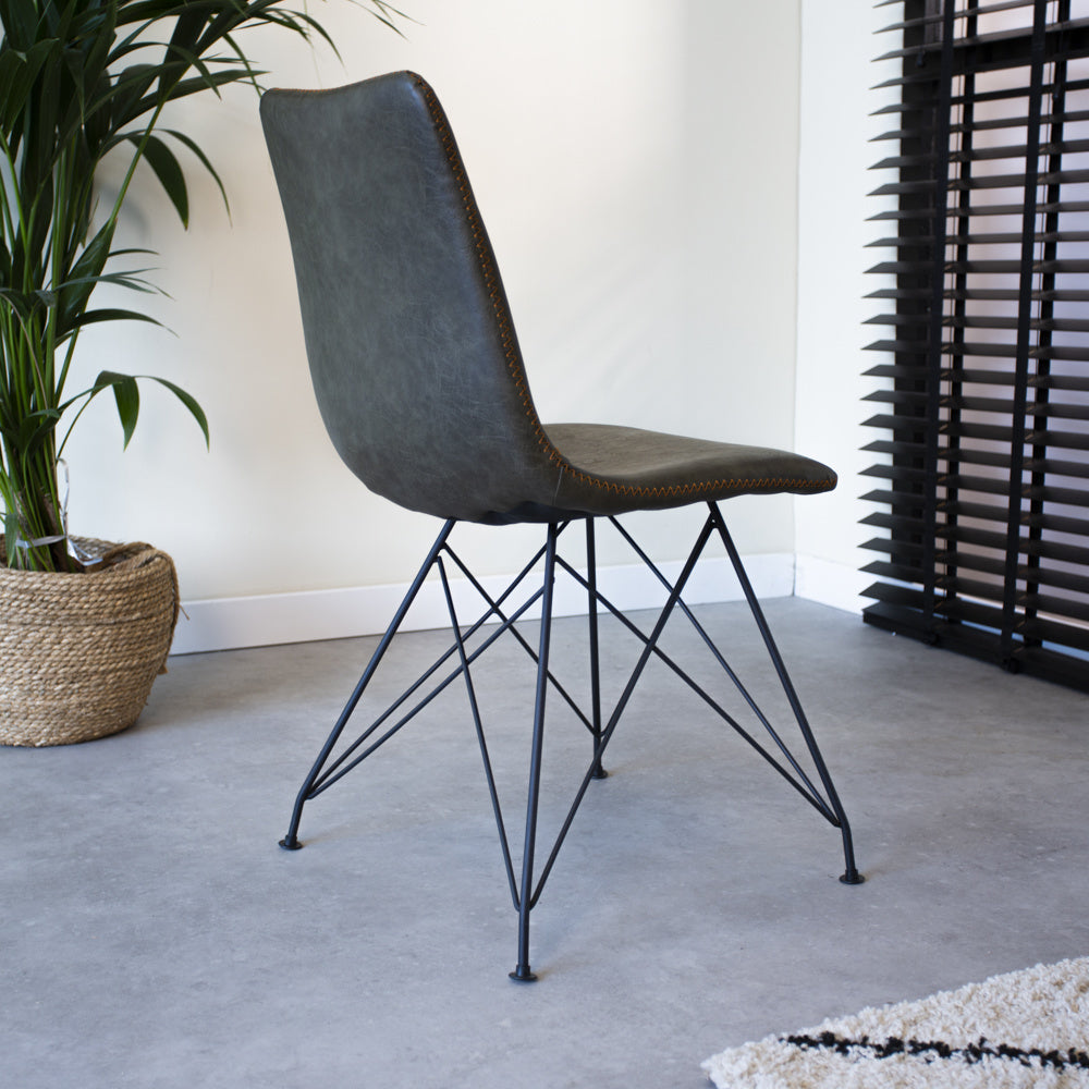 De kuipstoel Viano is een oersterk en stoer model! Op deze kuipstoelen kun je uren zitten en lekker tafelen met het hele gezin. De industriële eetkamerstoel Viano heeft een mooi zwart gepoedercoat frame met kunstlederen bekleding met opvallende