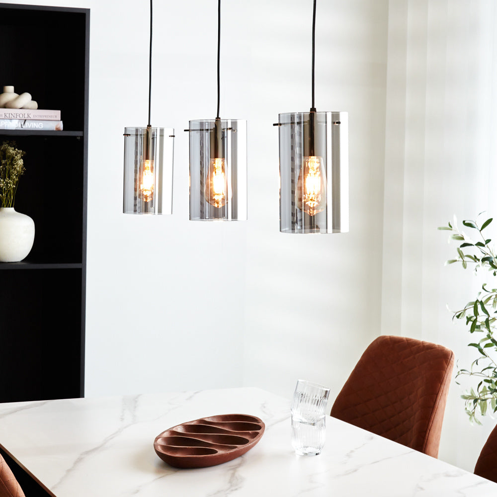 De prachtige, industriële hanglamp Hugo past dankzij zijn subtiele uiterlijk perfect in ieder interieur. De glazen kappen zorgen ervoor dat het sfeerlicht perfect door de ruimte wordt verdeeld. Vloerlamp Hugo kan goed gecombineerd worden met verschillende kleuren en materialen en past perfect boven jouw eetkamertafel! Maak het naar jouw eigen smaak met de industriële hanglamp Hugo!