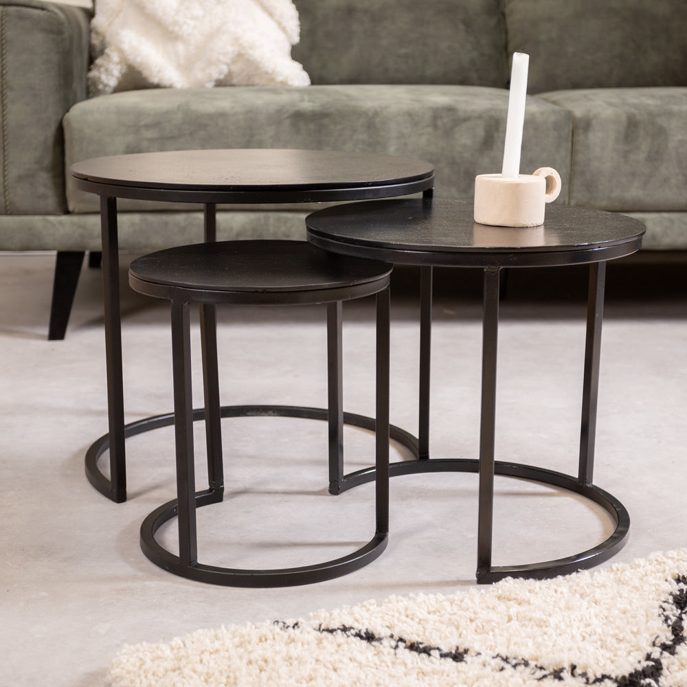 Salontafel set Alice is een stijlvolle toevoeging aan iedere woonkamer. Het metaal in combinatie met het zwarte blad is een opvallende en stijlvolle trend. De tafels kunnen onder elkaar geschoven worden.