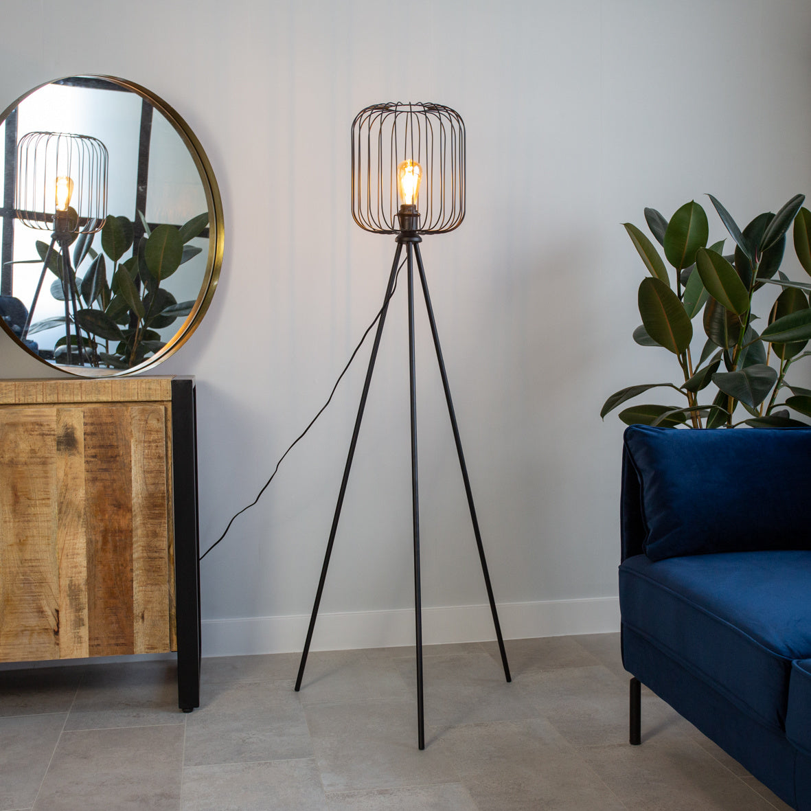 Het bijzondere en stoere design van vloerlamp Macie is uitgevoerd in metaal en is een plaatje voor het oog! Dankzij het open armatuur wordt het licht sfeervol door de ruimte verdeeld. Waar plaats jij deze prachtige vloerlamp?
