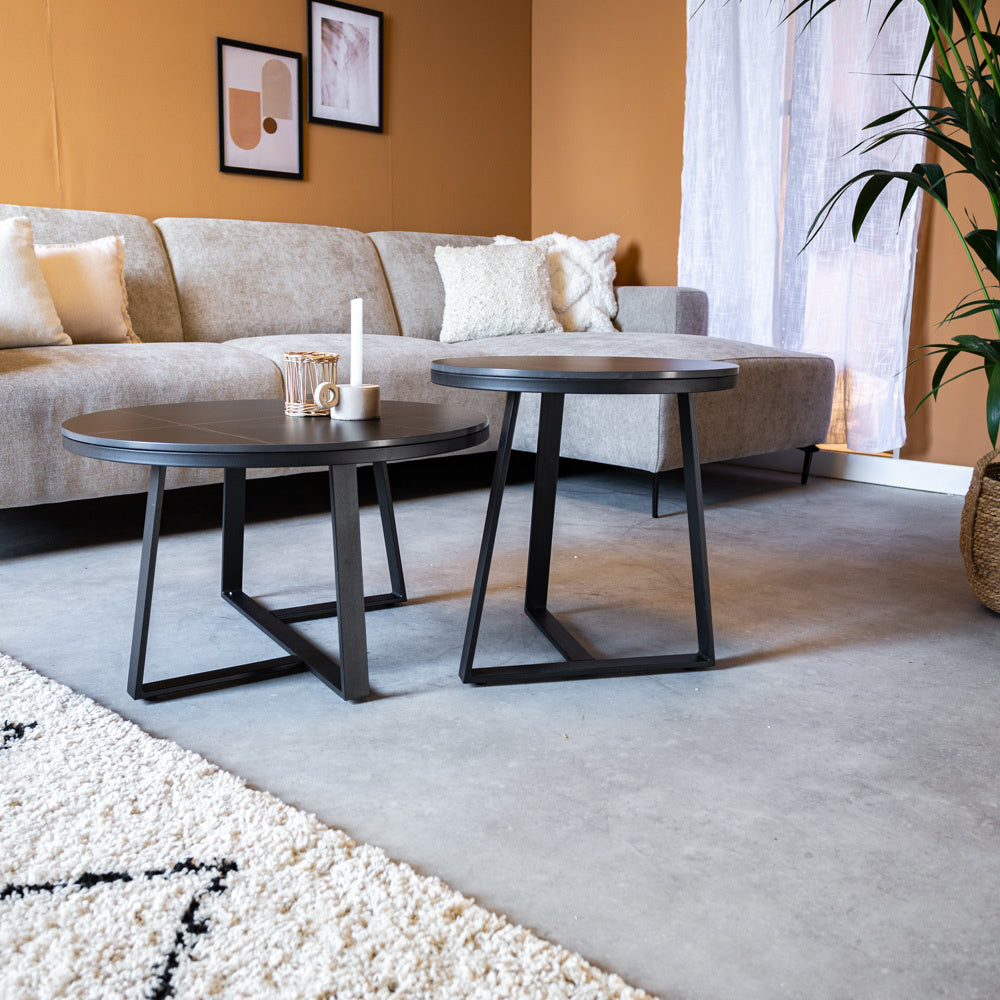 Materiaal frame Het framewerk van salontafel set Tanner is gemaakt van zwart gepoedercoat metaal en bevat een speelse vorm. Dit model dient middels een paar schroeven in elkaar gezet te worden.