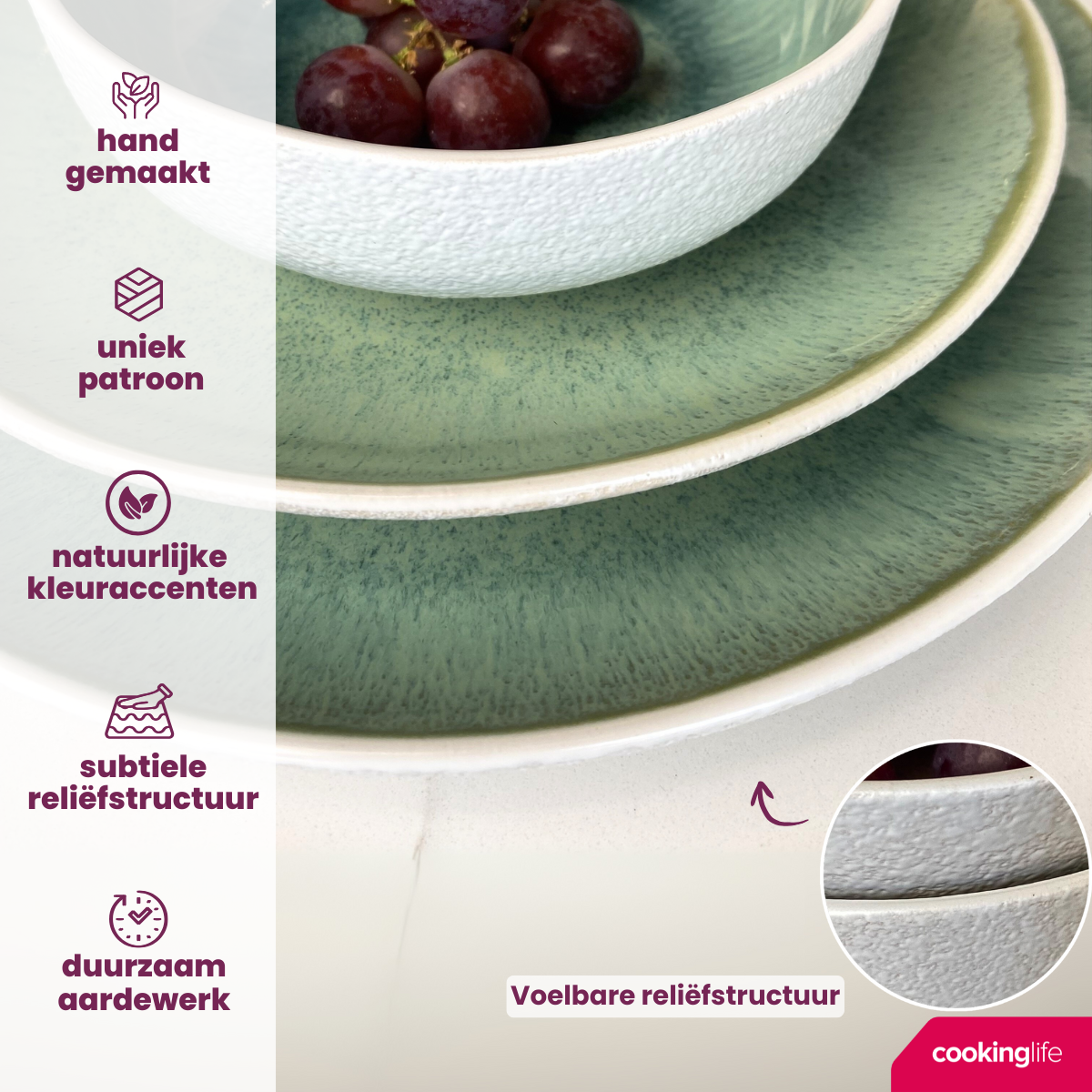- Elk bord heeft een unieke, handgemaakte uitstraling dankzij de reactive glaze-afwerking