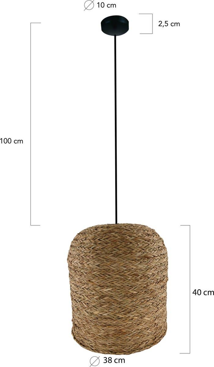 Afmetingen: Lengte: 38 cm Breedte: 38 cm Hoogte: 40 cm Lampen gemaakt van zeegras zijn niet alleen uniek en stijlvol, maar ook nog eens milieuvriendelijk. Deze hanglamp is een ware eye catcher door het natuurlijke design waardoor ieder item een unieke uitstraling heeft. Hang hem boven je eettafel voor een gezellig diner, of in de hoek van een kamer voor een subtiele sfeerverlichting.