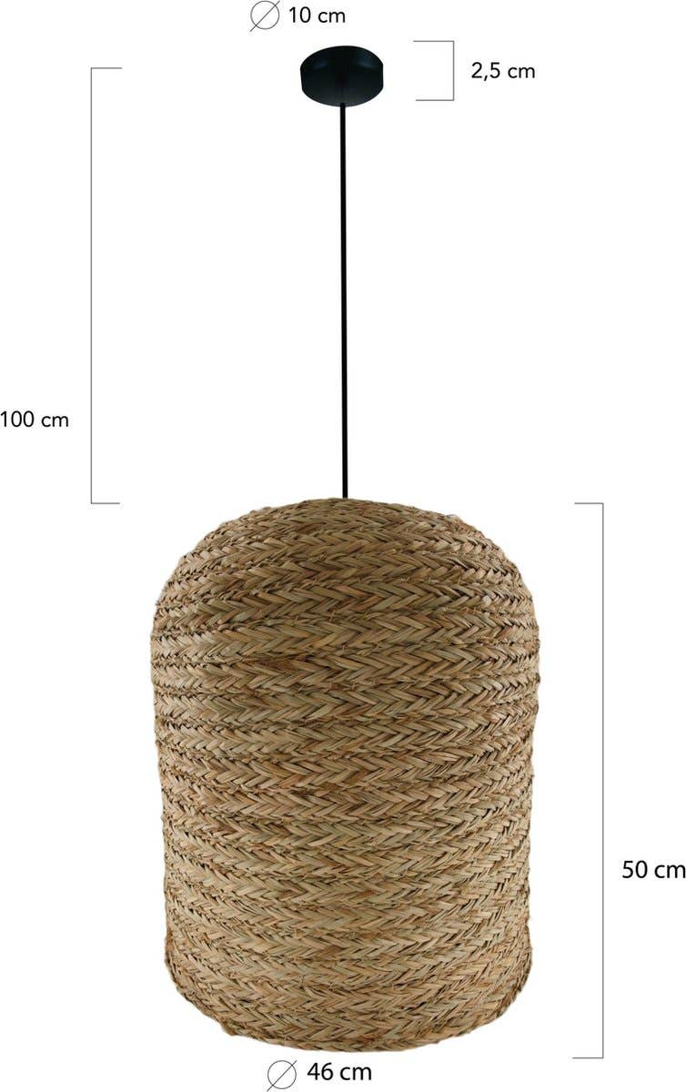 Afmetingen: Lengte: 46 cm Breedte: 46 cm Hoogte: 50 cm Lampen gemaakt van zeegras zijn niet alleen uniek en stijlvol, maar ook nog eens milieuvriendelijk. Deze hanglamp is een ware eye catcher door het natuurlijke design waardoor ieder item een unieke uitstraling heeft. Hang hem boven je eettafel voor een gezellig diner, of in de hoek van een kamer voor een subtiele sfeerverlichting.