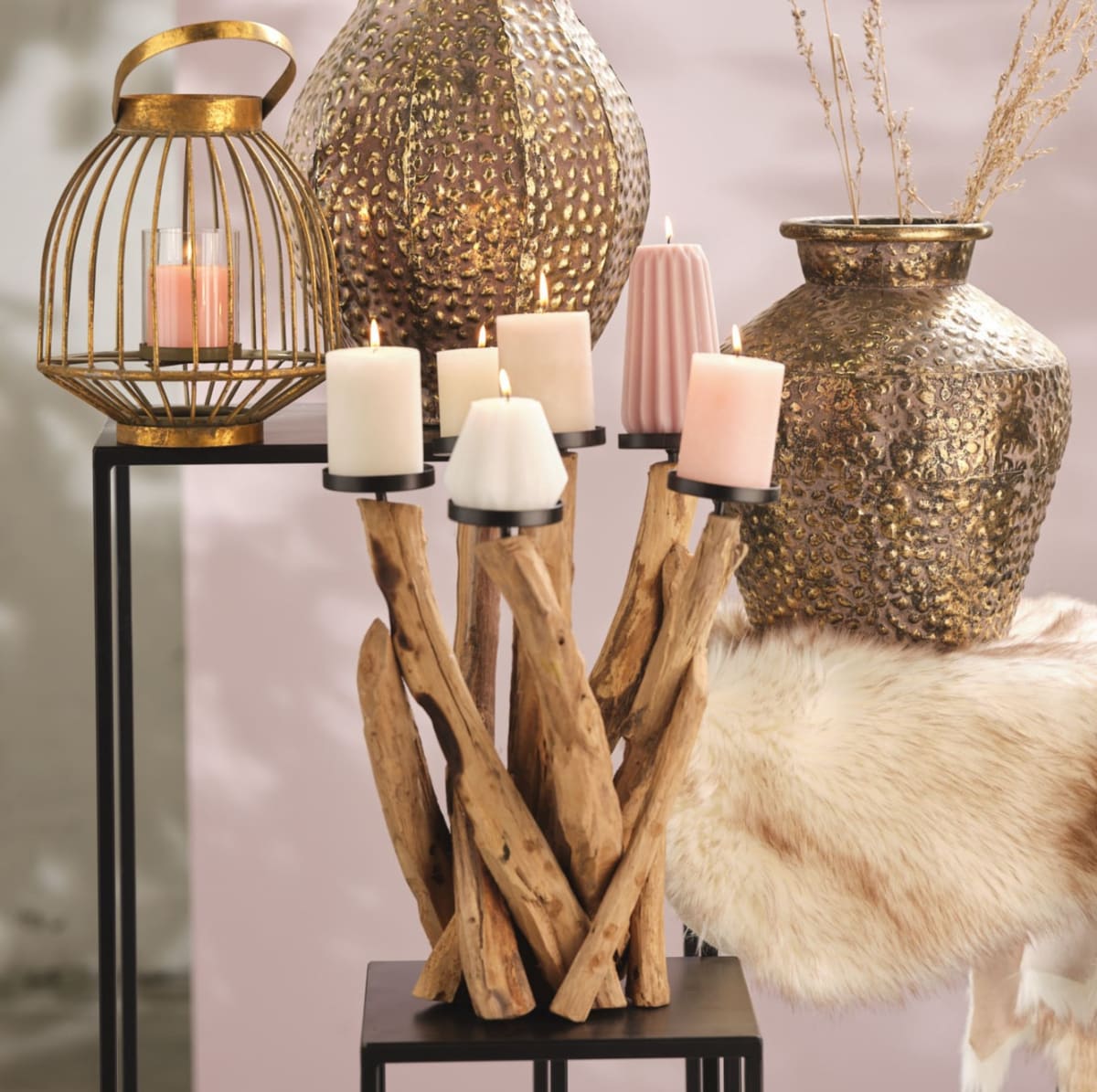 Verfraai je interieur met deze exclusieve natural teakhouten stronk met kaarsenhouders. De stronk is voorzien van 6 metalen kaarsenhouders, zodat je een landelijke knusse sfeer kunt creëren in of buiten de woning. Elke stronk is met de hand vervaardigd van een natuurproduct en daardoor uniek. Hierdoor kan het product enigszins afwijken van de hier getoonde afbeelding. Wanneer deze kandelaar buiten geplaatst wordt, zal het teak hout dankzij de natuurlijke werking een rustieke lichtgrijze kleur krijgen.