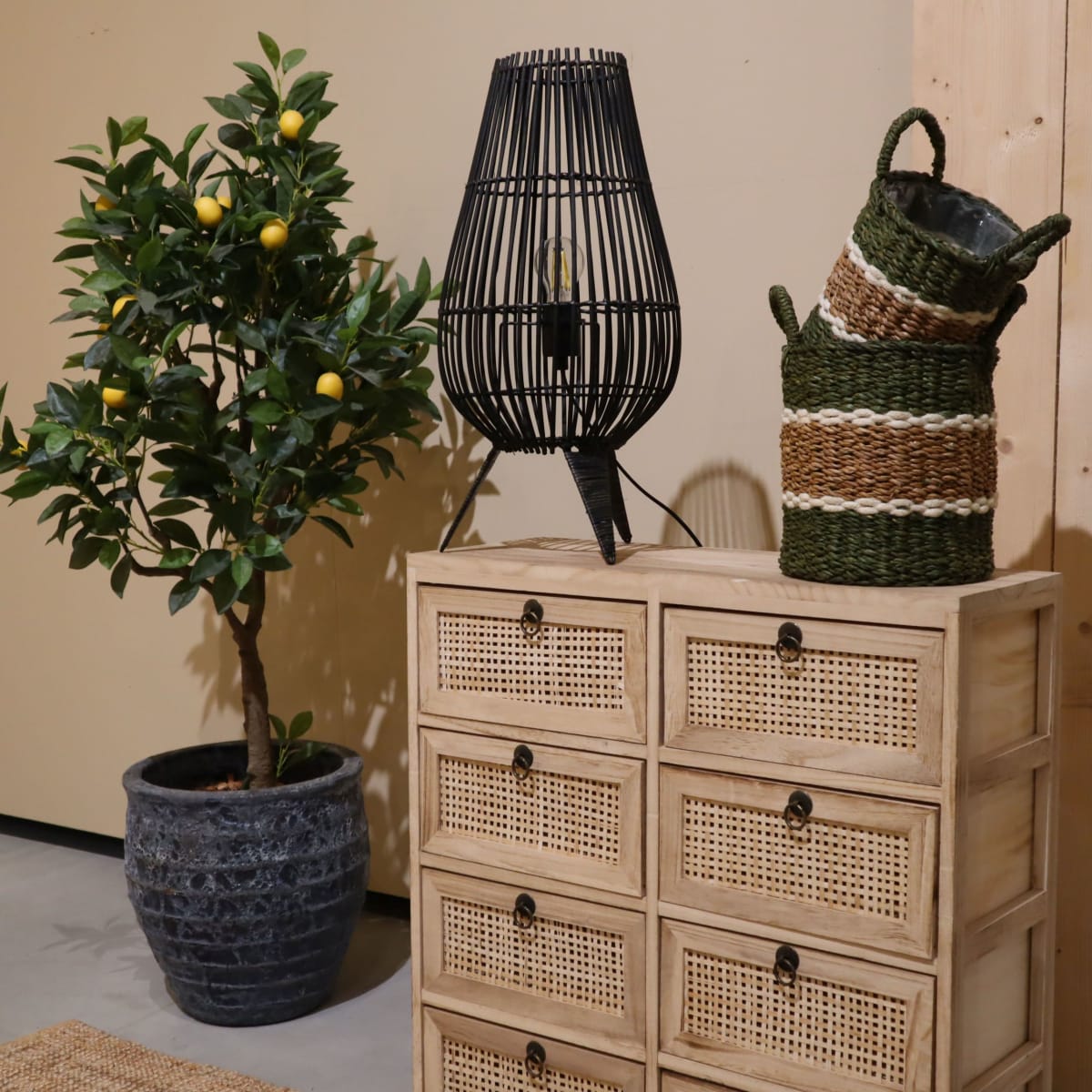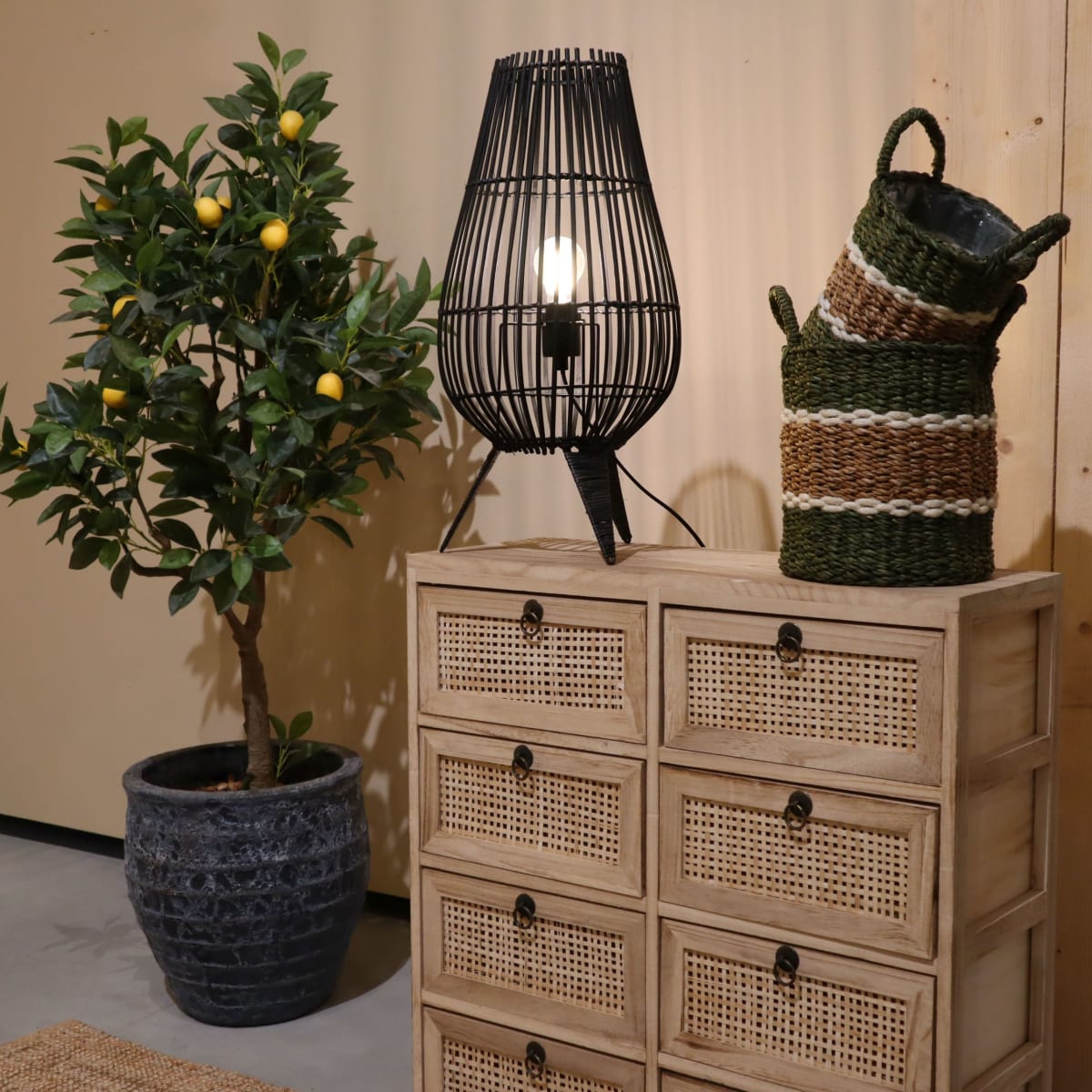 Afmetingen: Lengte: 28 cm Breedte: 28 cm Hoogte: 58 cm Staande lampen zijn de perfecte verlichting voor elk interieur. Met de juiste staande lamp kun je een kamer een geheel nieuwe uitstraling geven en sfeer creëren. Onze staande lamp gemaakt van bamboe materiaal is een uniek en stijlvol stuk verlichting dat niet alleen verlicht, maar ook een toevoeging is voor je huis. Of je nu een minimalistische of een klassieke woonstijl hebt, deze staande lamp past altijd perfect in je interieur. De lamp heeft een slanke en elegante vorm, waardoor hij niet alleen functioneel is, maar ook prachtig oogt.